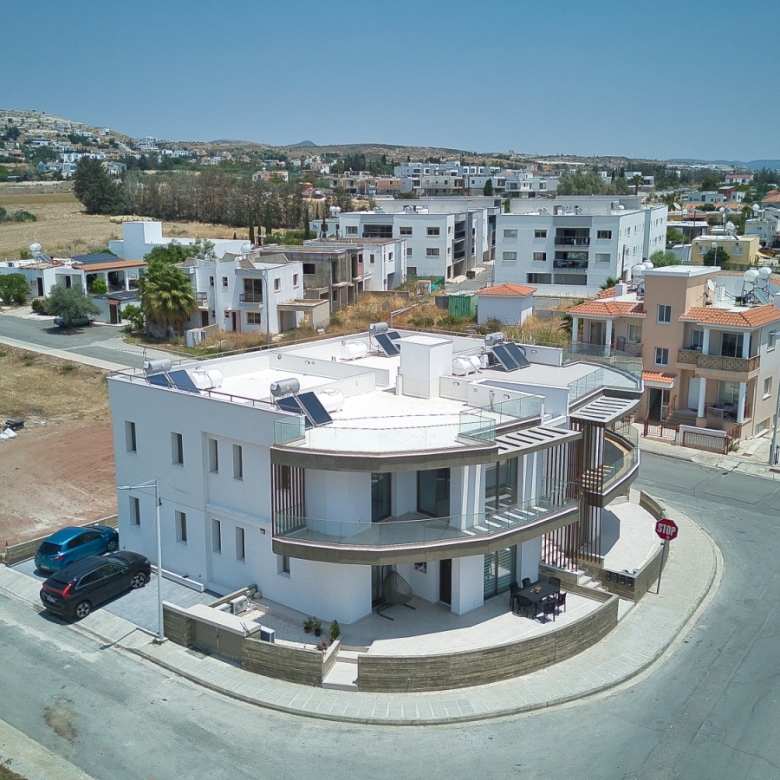 Amazing, unique project of four semi-detached apartments in a very quiet but convenient location in Paphos. Within walking distances to supermarkets, pharmacies’, schools and many more amenities. Great Sea views, privacy, spacious and bright bedrooms and living areas. Quality finishes and modern design make this project so enticing and ideal for a dream home or investment property. This unit has a roof garden of 40 square meters.
