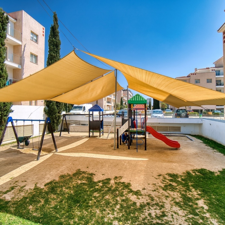The apartment has an open plan large living/dining areas and a separated kitchen with access to the balcony. Patio doors from the living area lead out to a good sized covered balcony (19 sqm) offering views to the swimming pool of the project and gardens. There are 2 large bedrooms with fitted wardrobes, one with access to the balcony and a family bathroom concludes the property. Covered parking available. The apartment is sold unfurnished. Title Deeds available. The resort that has been designed with the comfort, relaxation and enjoyment of the discerning property owner in mind, offering a wealth of services and facilities unparallel in the area, which include: concierge, GYM, SPA and indoor swimming pool available for the residents, 3 outdoor swimming pools, Elysia Breeze café, pharmacy, kiosk, ATM, kids’ playground. Within walking and short distances of this tranquility you can find the shopping areas, Kings Avenue Mall, schools and universities, city centre and beaches of Pafos.