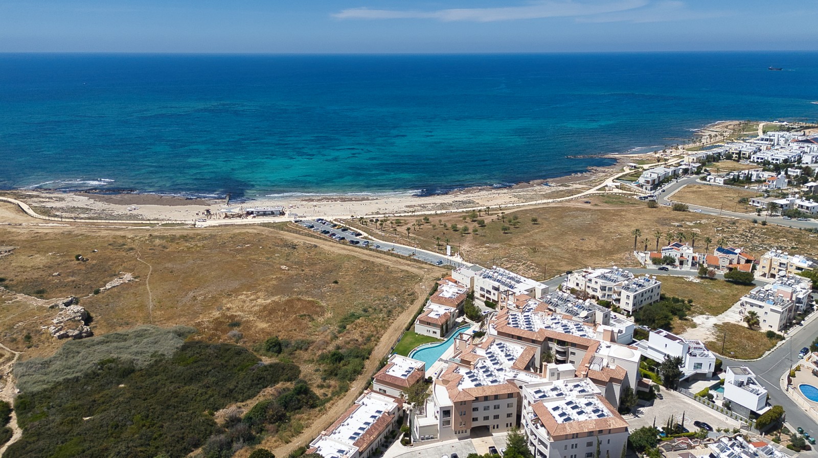 This highly sought after completed project is perfectly located, just 150 metres from the sea and in easy walking distance to the vibrant café quarter and harbour of Kato Pafos. Overlooking and just steps away from a beautiful sandy beach, the Pafos lighthouse and bordering the archaeological park, the location is ideal for lifestyle or an investment purchase. The stylish and well maintained development, offers an oasis of tranquillity. The apartments are centred around a large lagoon style swimming pool, the perfect place for relaxation and there is an indoor gym for those that want more activity. The stone paving, terracotta roofs, water features and courtyards lend a distinctly Cypriot feel to the development whilst the interiors are light and spacious with quality contemporary finishes. This spacious 2 bedroom top floor apartment is situated in an amazing location within the complex featuring a generous outdoor veranda overlooking the sea. The property features an open plan living and dining area with access to the veranda. A separate kitchen concludes the property. This property continues with two double bedrooms with fitted wardrobes. The master bedroom has en-suite facilities and access to the veranda. A family bathroom concludes the property.