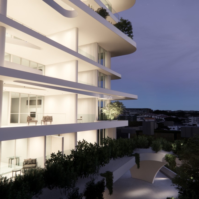 The ground floor of the project will be full of leisure facilities for lifestyle and convenience. Planned facilities include a gym, a coffee shop, and boutique stores. There is a beautiful private communal pool and sundeck for the residents, surrounded by landscaped gardens. This is modern living at its finest. Inside the apartments and penthouses are finished to exacting standards using contemporary materials that enhance the spacious open plan layouts. The modern luxurious finishes include underfloor heating (penthouses), concealed VRV systems, Italian-designed kitchens with Corian surfaces, all purposefully designed to provide modern minimal aesthetics.