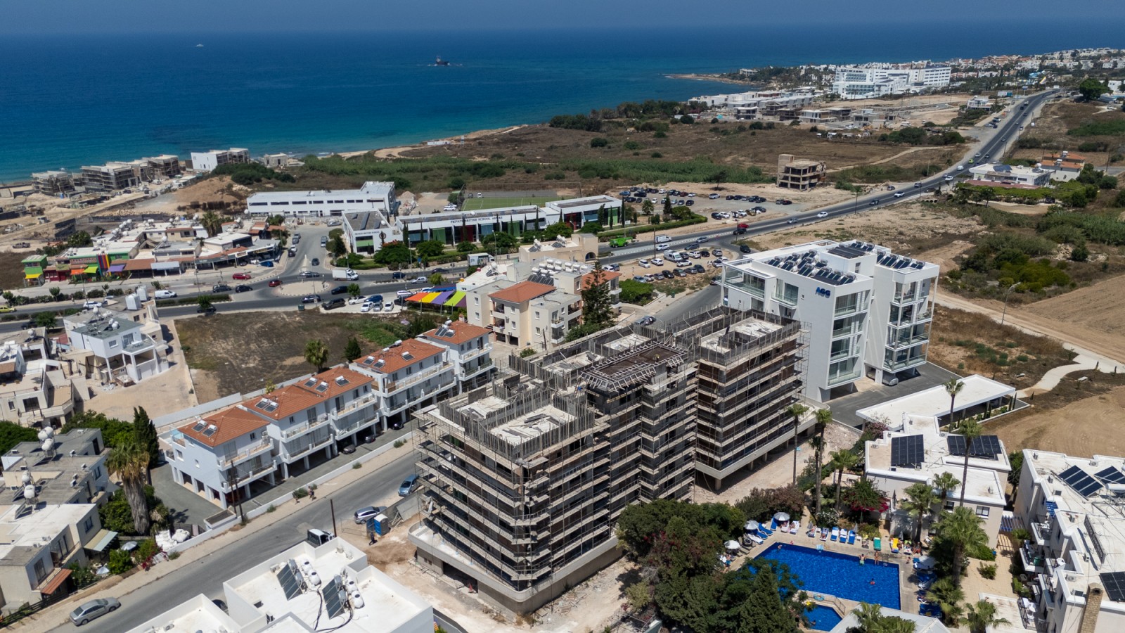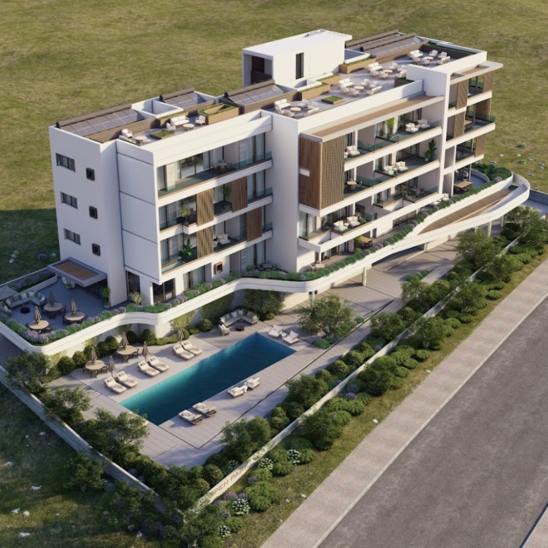 This is a brand-new gated apartment building, consisting of 20 luxury apartments and located in the popular tourist area of Tombs of the Kings in Paphos. Situated in very close proximity to British Aspire School, Capital Coast Hotel, and the historic Tomb of the Kings, this prime location offers convenience and accessibility, as well as offers the potential for great return on investment as a rental property. Beaches, the harbour, hotels and King’s Avenue Shopping Mall are all less than a 10 minutes’ walk, and essential amenities just 3 minutes away. Each luxury apartment provides a spacious layout with premium quality finishes, large balcony spaces, and high-end features such as VRV for cooling and underfloor heating.