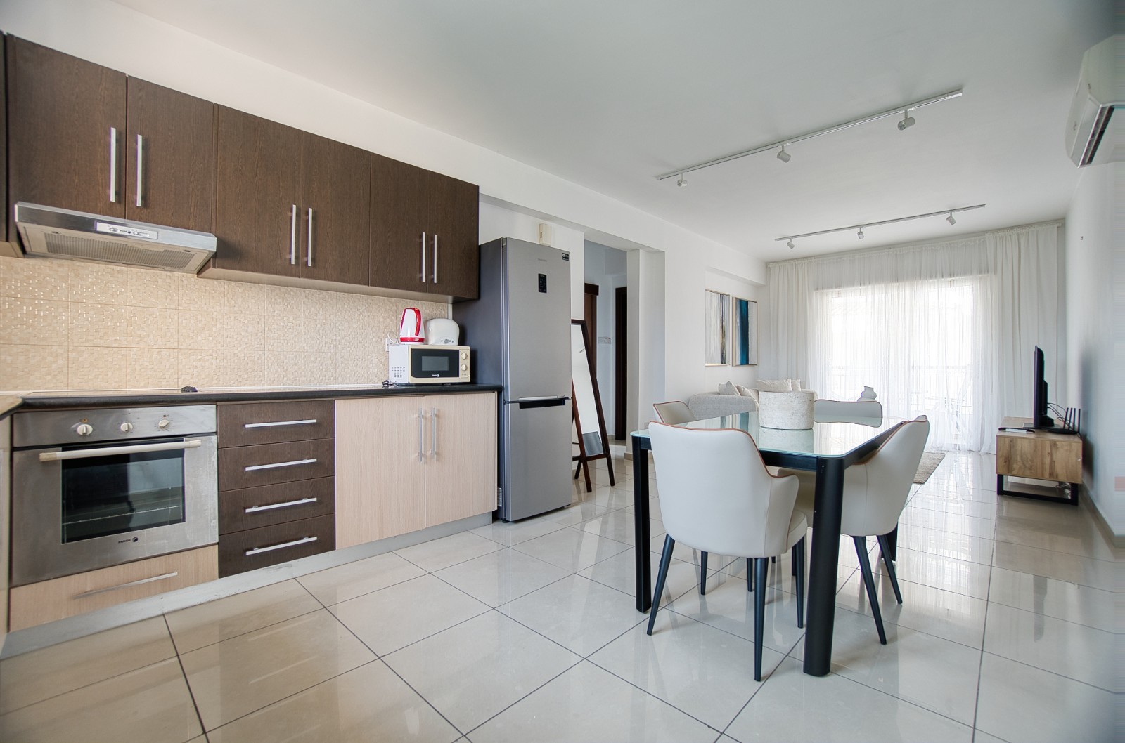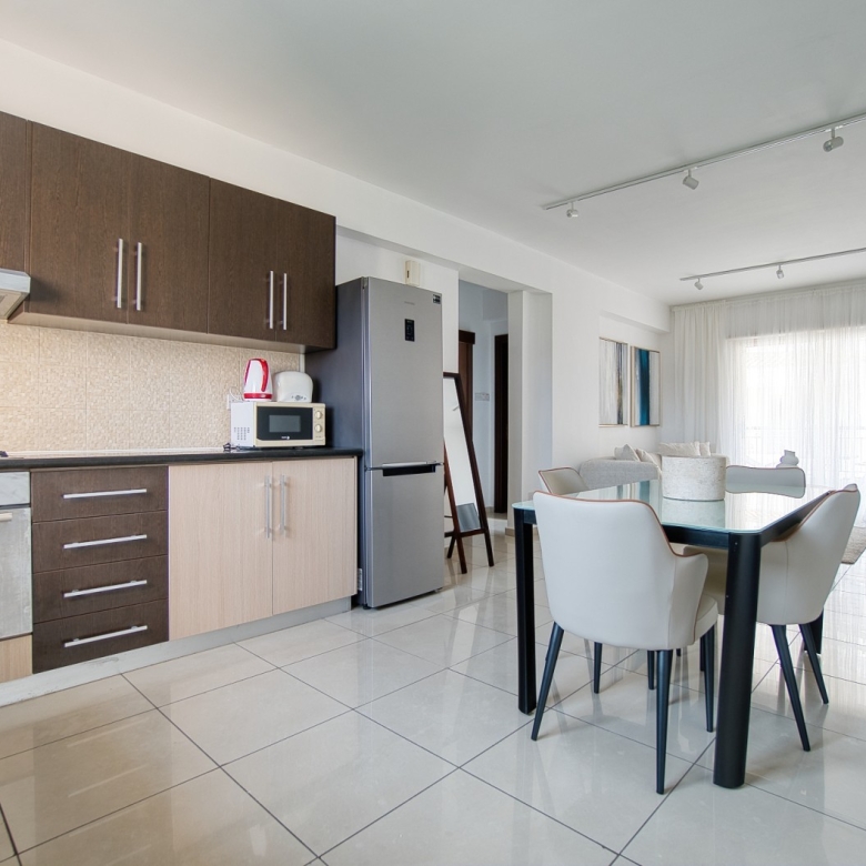 This is a fabulous 2 bedroom 2 bathroom, second floor apartment located in a small complex in Tomb of the Kings, Kato Paphos, close to all amenities, with great sea view and views over the pool. This great property offers quality living spaces and incredible outside opportunities due to the good sized veranda. Entering into the kitchen area with the main lounge leading to the veranda and the large open plan fully fitted kitchen. The large 2 double bedrooms are opposite the entrance ensuring peace and quiet whilst sleeping. The bathroom, which is adjusted to the bedroom. The bedrooms and the main room have air conditioning units which are also reversible for the cooler months. Also the property is fully furnished with new and good quality furniture.