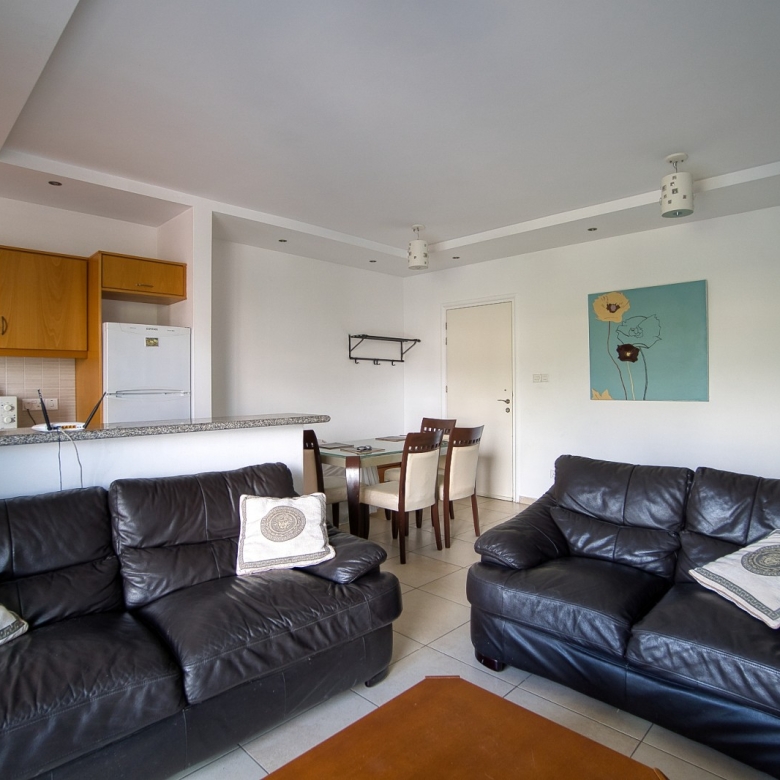 The apartment is centrally located in Paphos, which means it’s close to amenities such as shops, restaurants, and public transportation. This can be very convenient for residents.  Being part of a new complex can be advantageous. New buildings are often equipped with modern amenities and are generally in better condition. The complex offers a range of communal facilities, including a large swimming pool and a children’s pool. This is great for residents who want to relax by the pool or for families with children. The presence of a playground is a bonus for families with kids. It provides a safe and convenient place for children to play.  Having a cafe within the complex is convenient for grabbing a quick meal or a coffee without having to leave the premises. The external territory with green spaces and recreation areas adds to the aesthetic appeal of the complex. It can be a pleasant place to take a stroll or simply relax outdoors.  The availability of sun loungers and umbrellas by the pool suggests that the complex is well-equipped for sunbathing and relaxation. A fully equipped kitchen is important for residents who enjoy cooking. It also makes it more convenient for daily living.