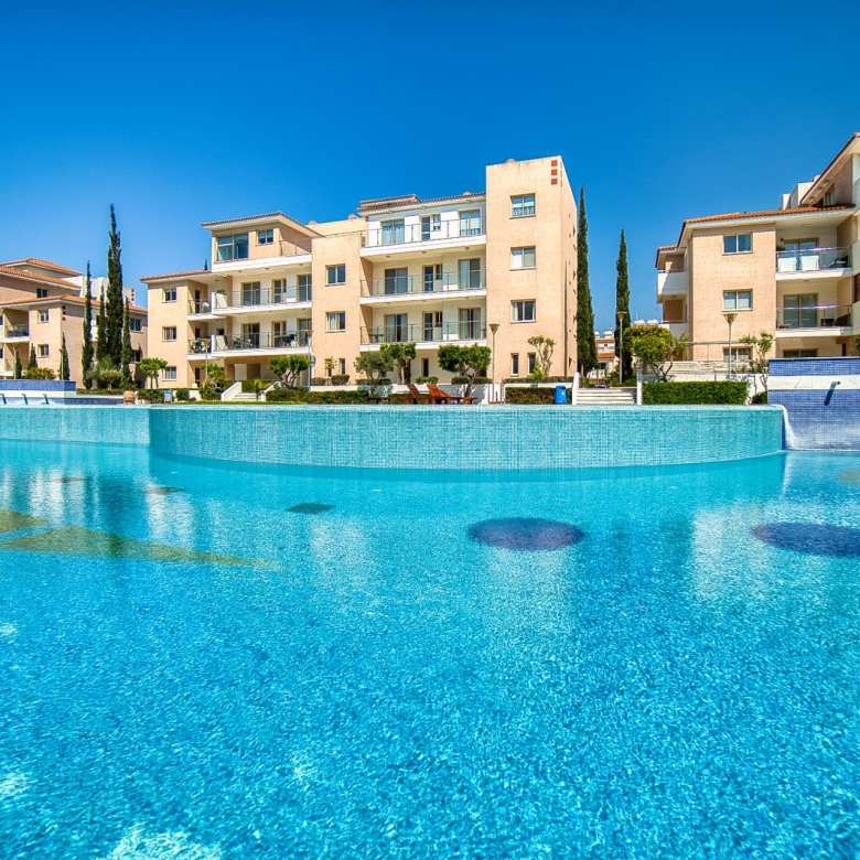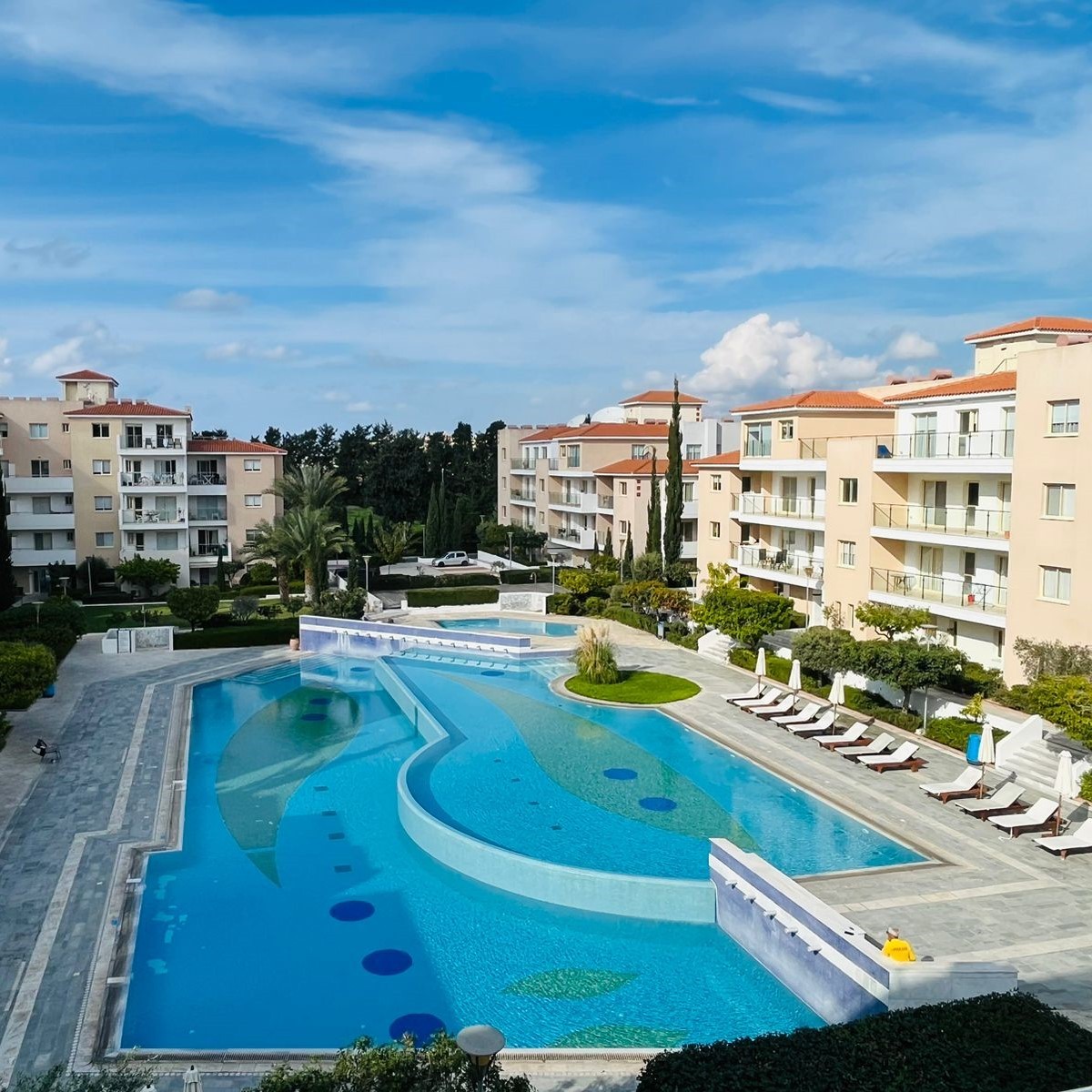 Elysia Park is the resort that has been designed with the comfort, relaxation and enjoyment of the discerning property owner in mind, offering a wealth of services and facilities unparallel in the area, which include: concierge, GYM, SPA and indoor swimming pool available for the residents, 3 outdoor swimming pools, Elysia Breeze café, pharmacy, kiosk, ATM, kids playground. Within walking and short distances of this tranquility you can find the shopping areas, schools and universities, city centre and beaches of Pafos. The property has an open plan large living/dining areas and a fully equipped kitchen. Patio doors from the living area lead out to a good sized covered veranda offering views to the swimming pool of the project. There are 2 large bedrooms with fitted wardrobes and family bathroom concludes the property. Covered parking available. The apartment is in an excellent condition, sold furnished.