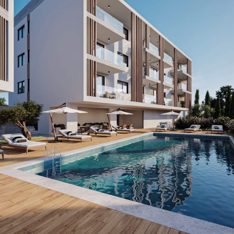 Project comprises of 2 blocks of studio, 1-bedroom and 2-bedroom apartments and a plethora of on-site facilities. It is located in the sought-after area of Universal in Pafos, the most popular area for short-term rentals in Cyprus. Consisting of 27 units in total, a reception area, a fitness centre, covered communal areas, kids playground, landscaped gardens and a 80 square-meters swimming pool, is an ideal project for both investment and permanent living.