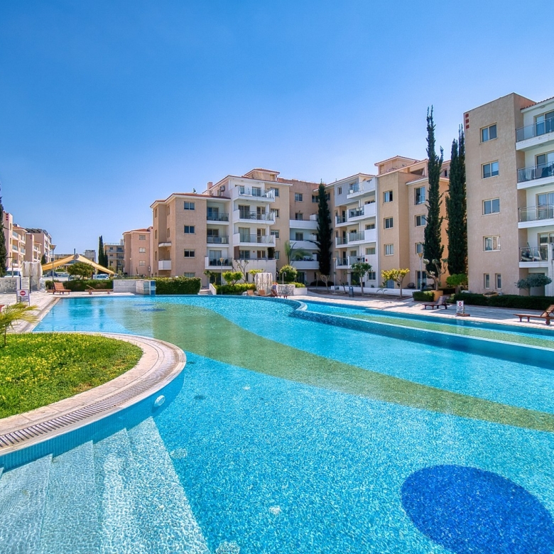 Elysia Park is the resort that has been designed with the comfort, relaxation and enjoyment of the discerning property owner in mind, offering a wealth of services and facilities unparallel in the area, which include: concierge, GYM, SPA and indoor swimming pool available for the residents, 3 outdoor swimming pools, Elysia Breeze café, pharmacy, kiosk, ATM, kids playground. Within walking and short distances of this tranquility you can find the shopping areas, schools and universities,  city Centre and beaches of Pafos. The property has an open plan large living/dining areas and a kitchen separated by a breakfast bar with access to the veranda. Patio doors from the living area lead out to a good sized covered veranda offering views to the swimming pool of the project. There are 2 large double bedrooms with fitted wardrobes, master bedroom has en-suite facilities and family bathroom concludes the property. Covered parking and storage available. The apartment is in a very good condition, sold furnished.