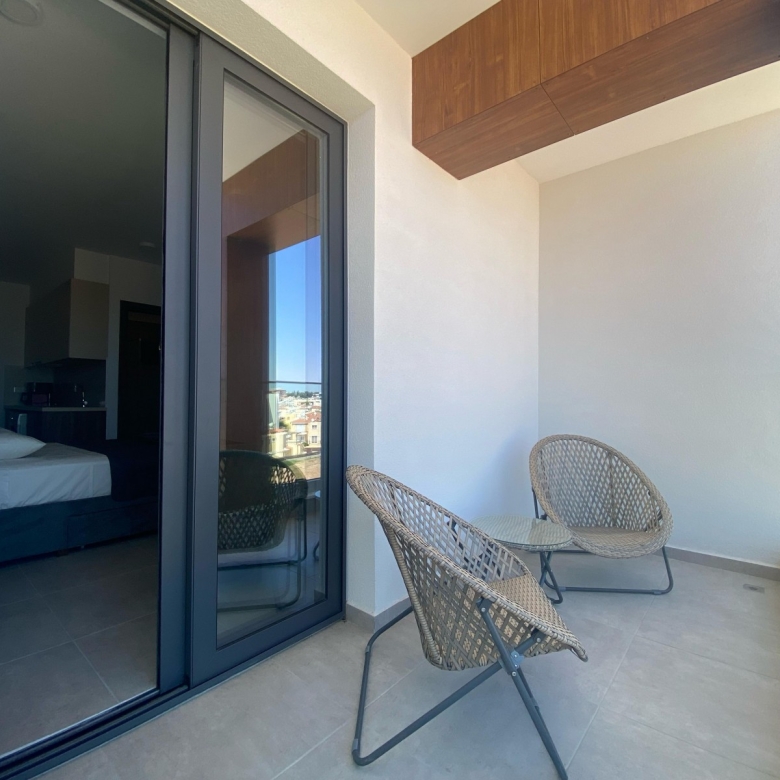 Brand new, modern and stylish, this well-presented studio and 1-bedroom apartment is located in the popular Universal area of Paphos, offering comfort, convenience, and great investment potential. Situated on the top floor of a well-maintained complex, the apartment features an open-plan living area with a fully equipped kitchenette, a private bathroom, and access to a cozy balcony with open views.