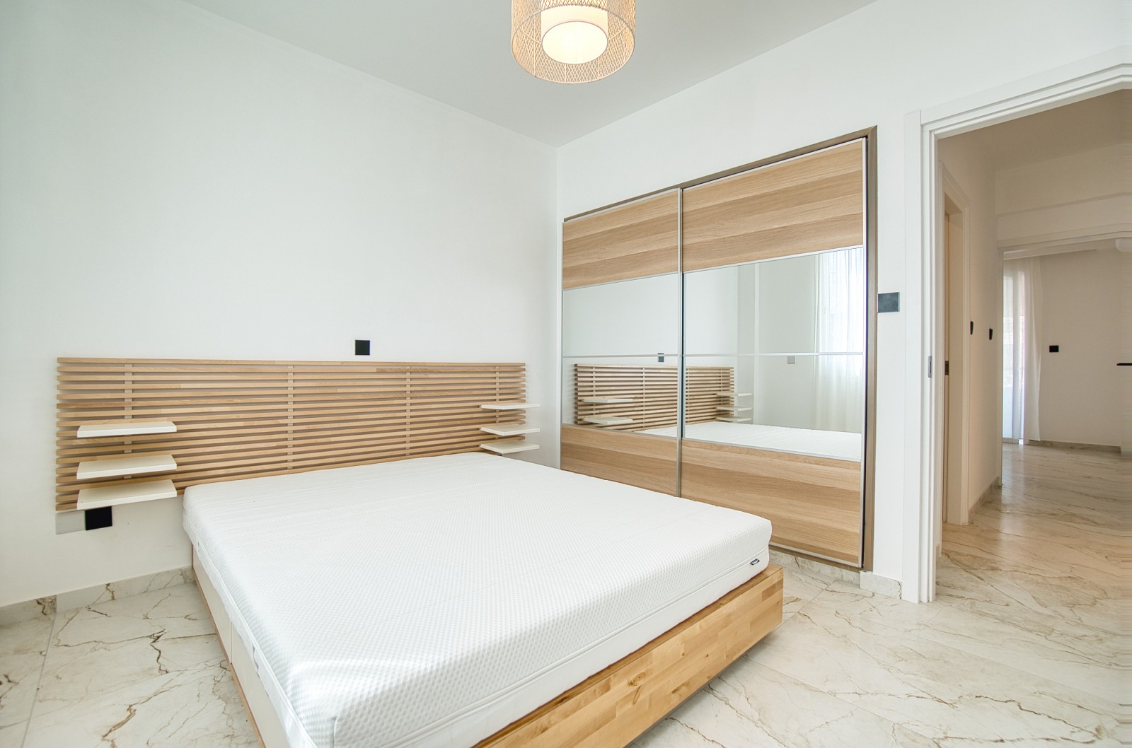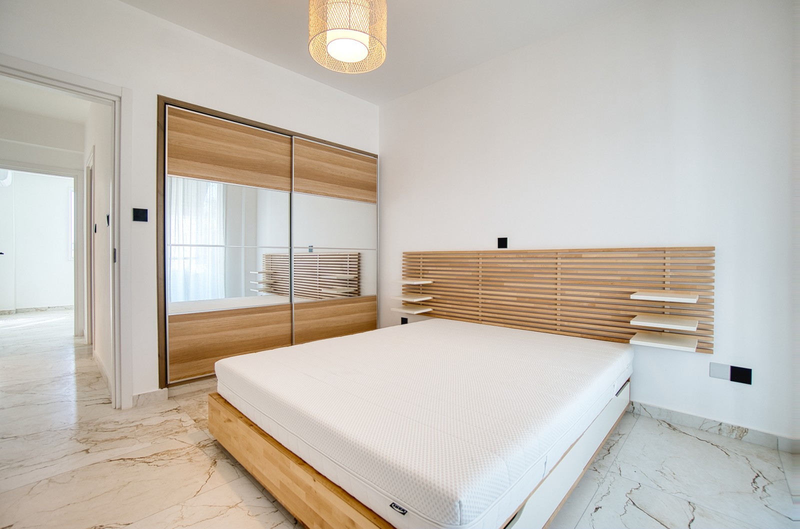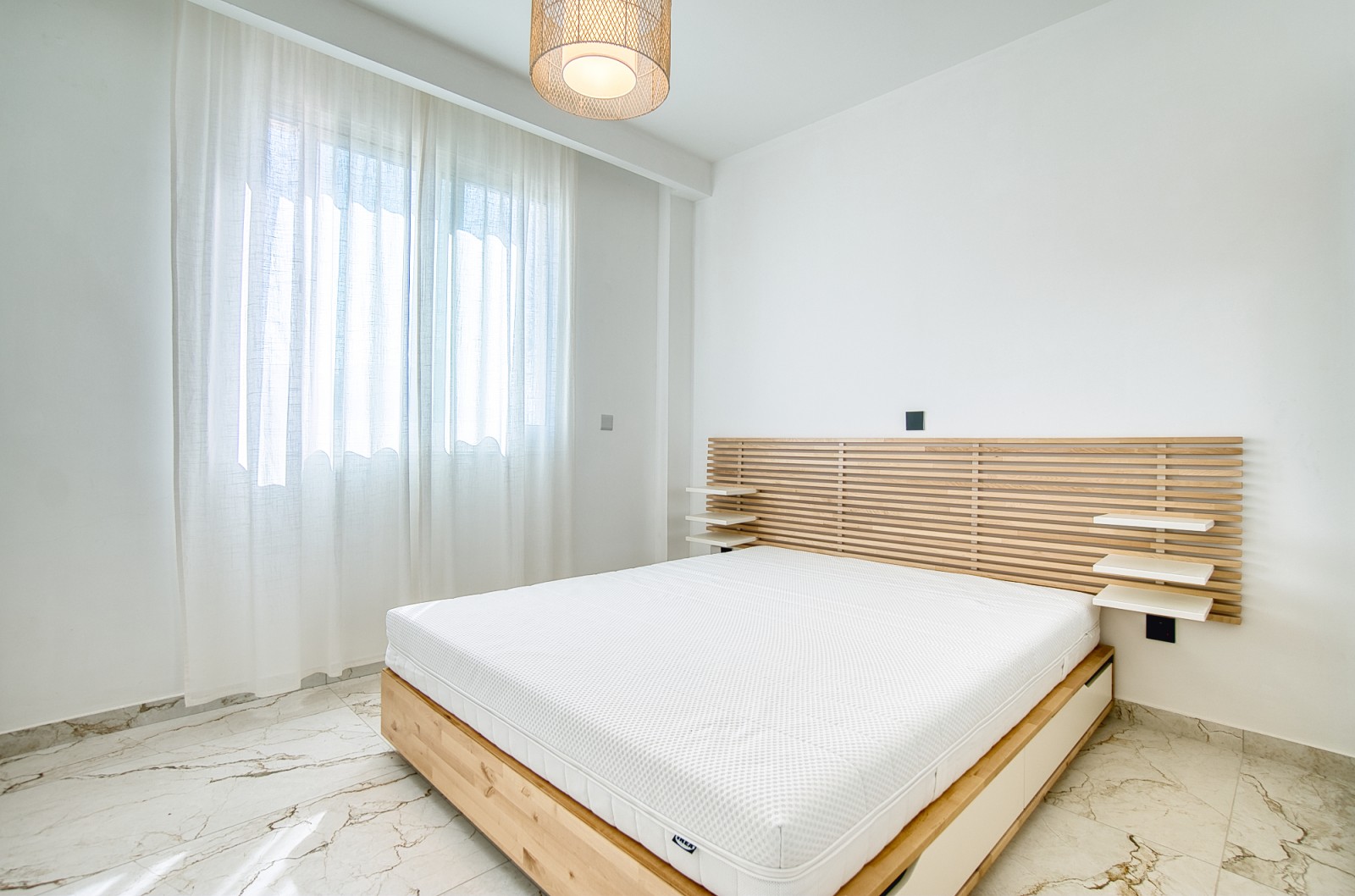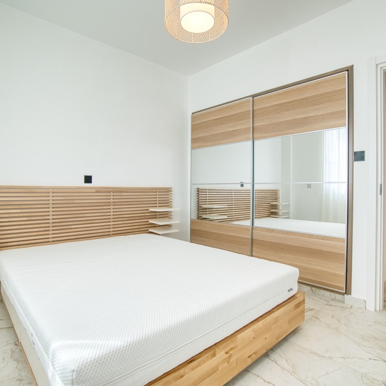 Beautiful two bedroom apartment with excellent and quality renovation in a quiet residential area of Universal Area, close to Kings Avenue Mall and New American University of Beirut. The property is part of a well maintained and established complex on the ground floor with elevator. As you enter the apartment on the left is the kitchen and open plan living/dining area and veranda. Sliding patio doors from the living room lead out to a covered balcony with outdoor seating area. The living room leads to two double bedrooms and a family bathroom. Both bedrooms have built in wardrobes. Fully renovated with high quality finishes such as marble, stone, porcelain stoneware etc. Fully fitted kitchen with appliances. Partially furnished. The roof has been recently insulated. 75 covered area 10 covered verandas.