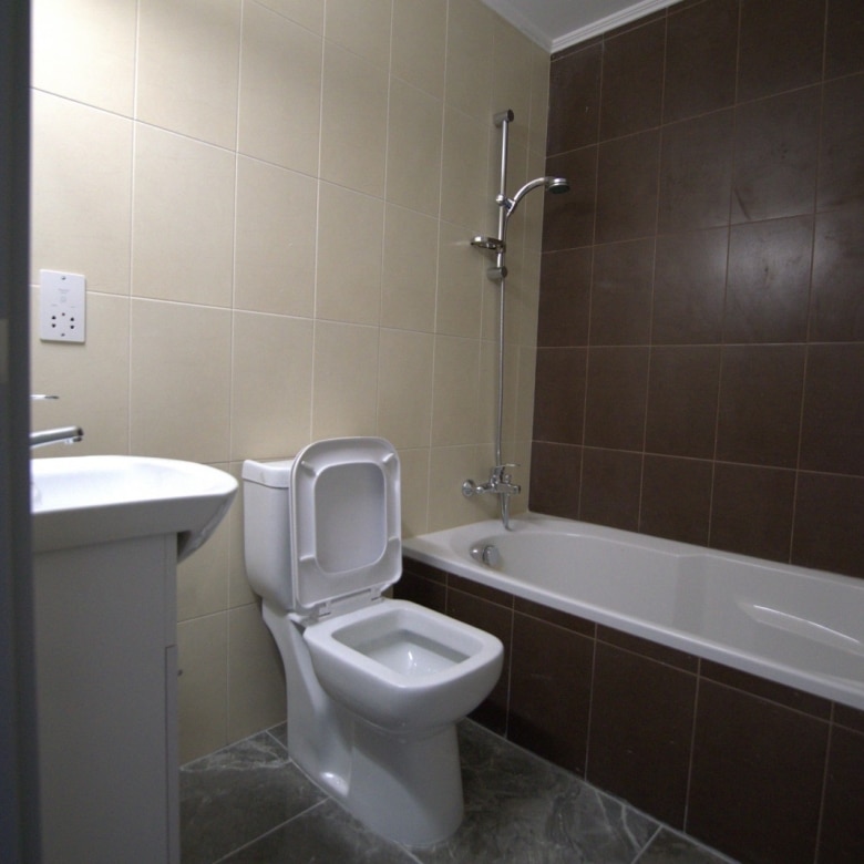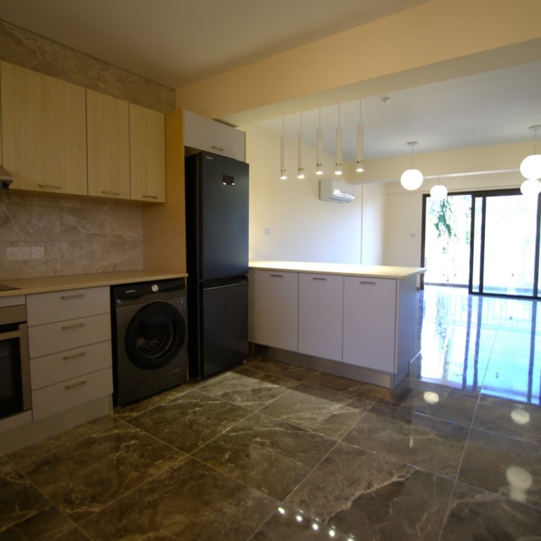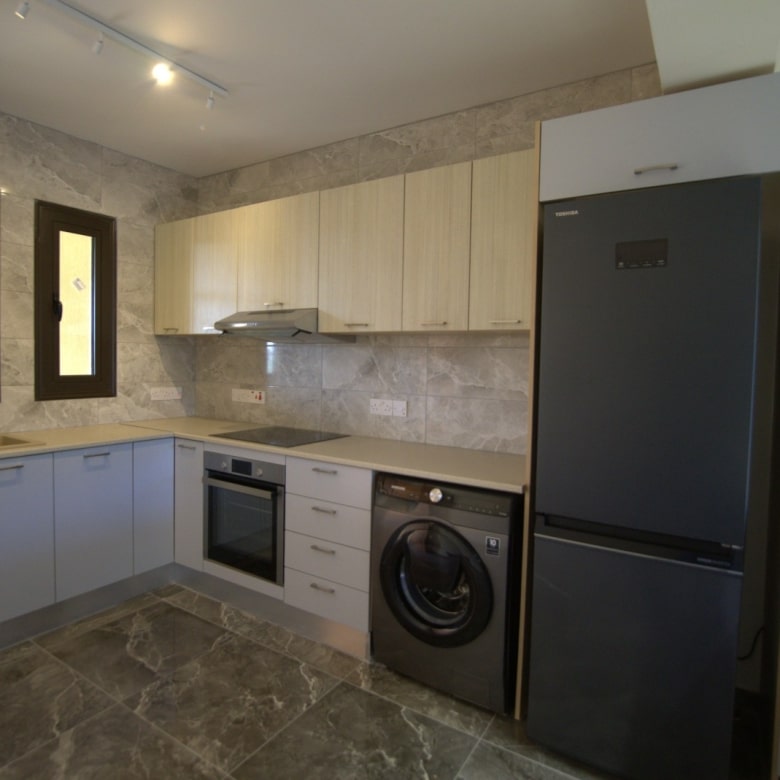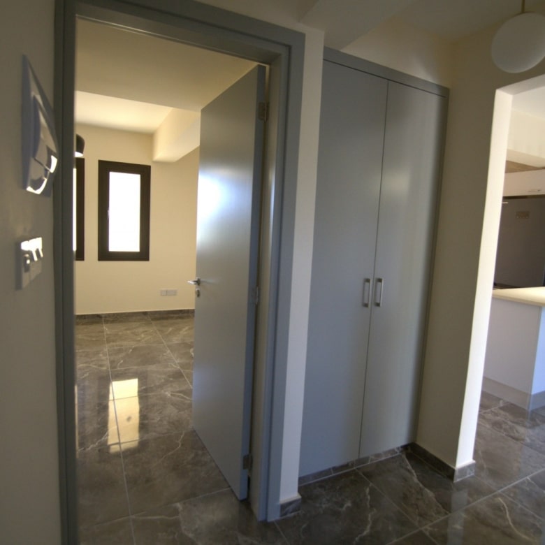 The apartment on the 1st floor occupies an area of 76sqm and consists of an open plan kitchen and living room, two bedrooms, one bathroom.