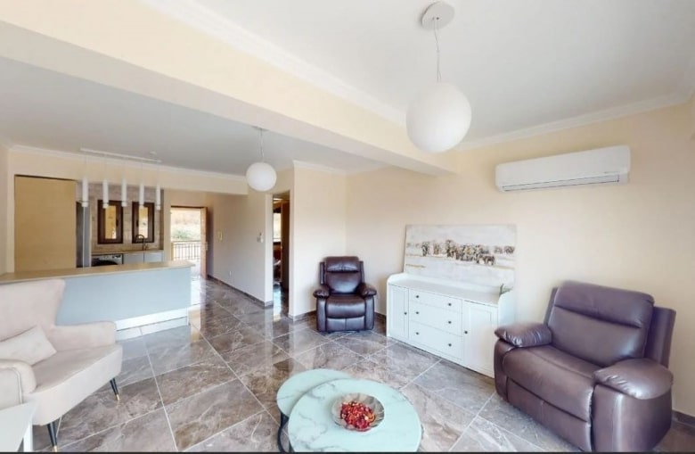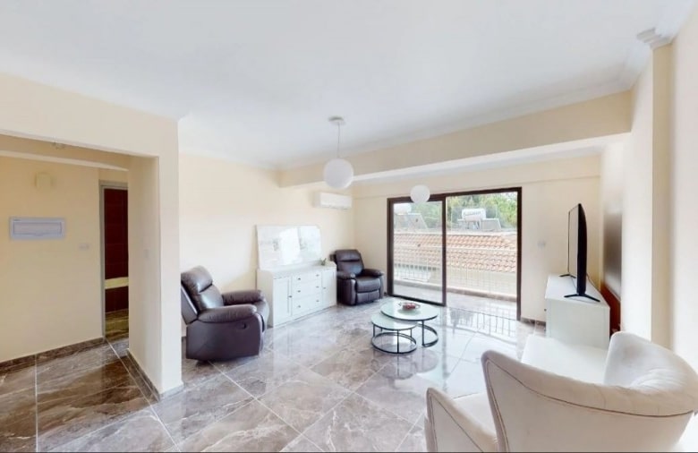 2 Bedroom fully renovated apartment in Kouklia, Paphos close to village center. Modern finishes, parking, communal pool quiet area close to Secret Valley and Aphrodite Hills Golf Course close to airport.
