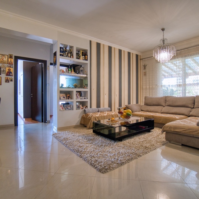 Located in exo vrisi, a stunning 2 bedroom apartment finished to a very high standard. Upon entering the property you are met with the very spacious, open kitchen/dining/living area. In the kitchen you will notice there are high quality, Miele appliances used there. There is also back lighting behind all the kitchen units illuminating the work tops. There are 2 spacious bedrooms both leading out onto a 20sqm covered veranda with magnificent views down to the sea. Outside the property there is a very large veranda that covers 40sqm, it is equipped with an outside kitchen and a small utility area with a washing machine and cupboards space.