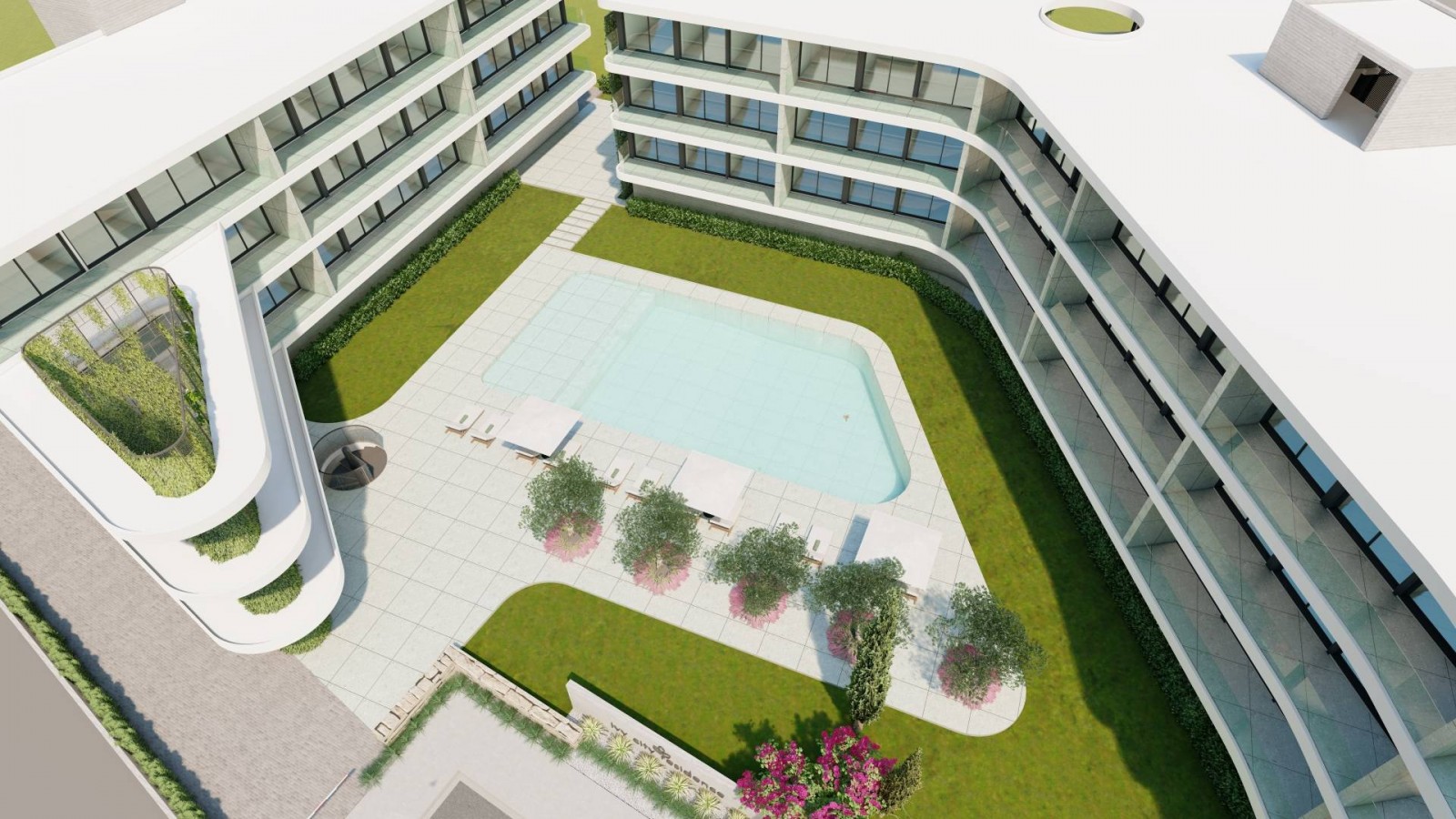 Located in the heart of Paphos, the new project is a stunning and luxurious yet affordable development, showcasing exceptional architecture and meticulous attention to detail. The development comprises two blocks with a total of 45 apartments for sale, offering one, two, or three – bedroom options. Each apartment offers an open-plan living, featuring high quality design and large windows that flood the space with natural light. Built to the highest standards using premium materials and finishes, these apartments include private parking, an in-houses gym and access to a communal pool surrounded by beautifully landscaped gardens. The apartment complex location is ideal for both residents and investors to buy, since it is located between the City Centre and the Tourist Area making it ideal for permanent residents or just generating extra income through tourists, students.