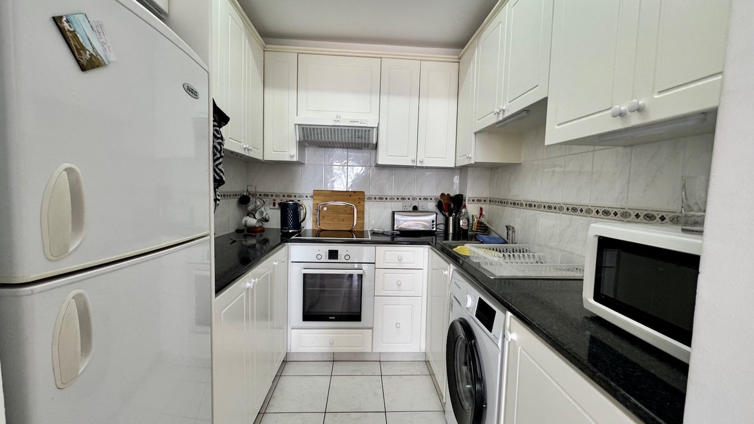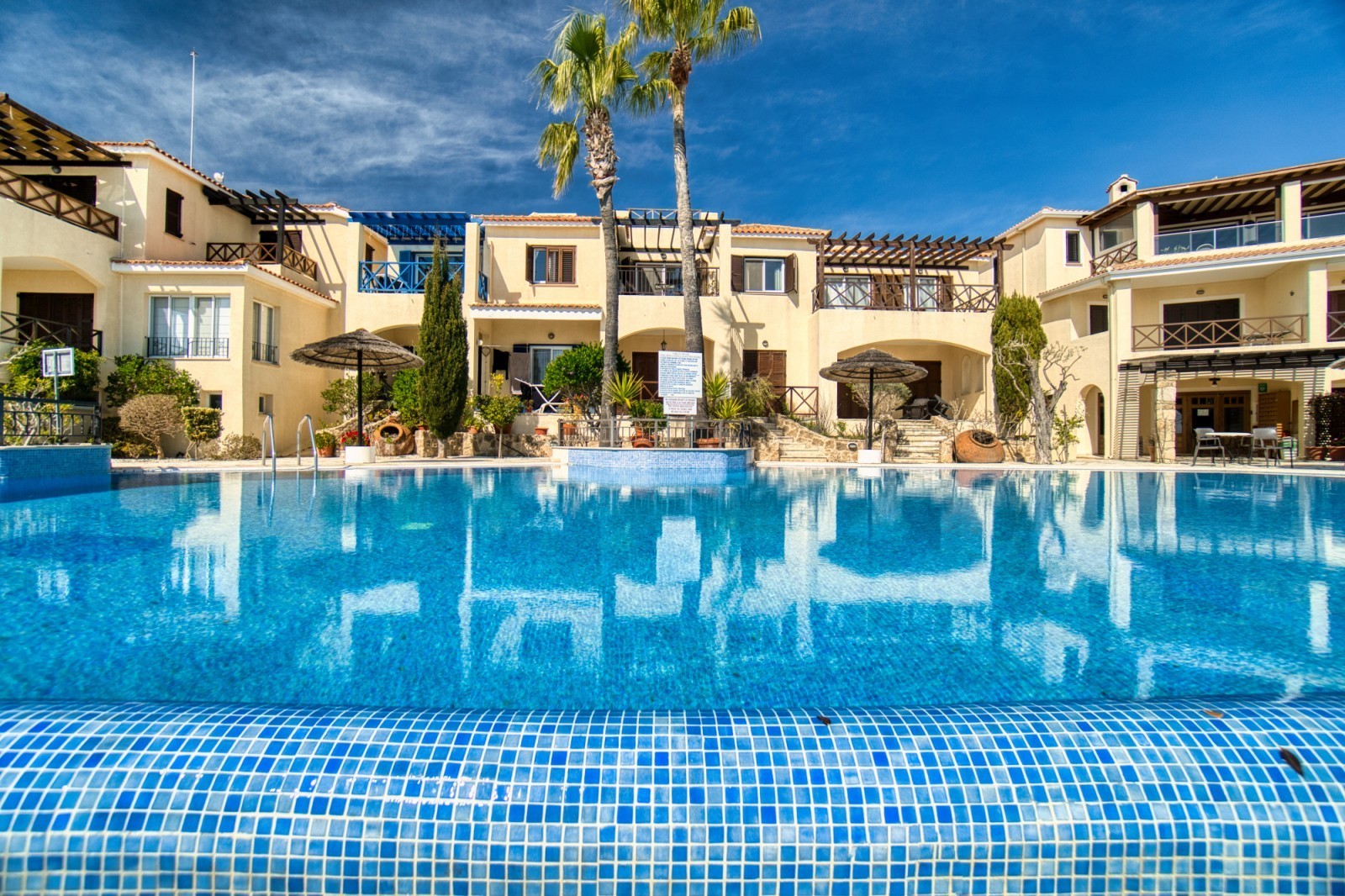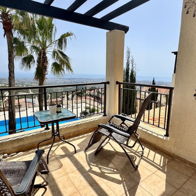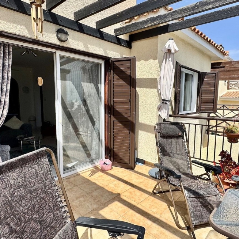 This charming two bedroom penthouse in a well-maintained and highly sought-after complex in Tsada. Upon entering, you’re welcomed into a bright open-plan living and dining area with patio doors that open onto a generously sized balcony. From here, you can enjoy beautiful views of the communal pool and breathtaking panoramic sea views—perfect for relaxing or entertaining. At the opposite end of the living area, the fully fitted kitchen comes complete with white goods and ample storage space. To the left of the kitchen is a comfortable twin bedroom featuring floor-to-ceiling fitted wardrobes and an en-suite shower room. On the opposite side of the kitchen, you’ll find the family bathroom and the spacious master bedroom, also with fitted wardrobes.