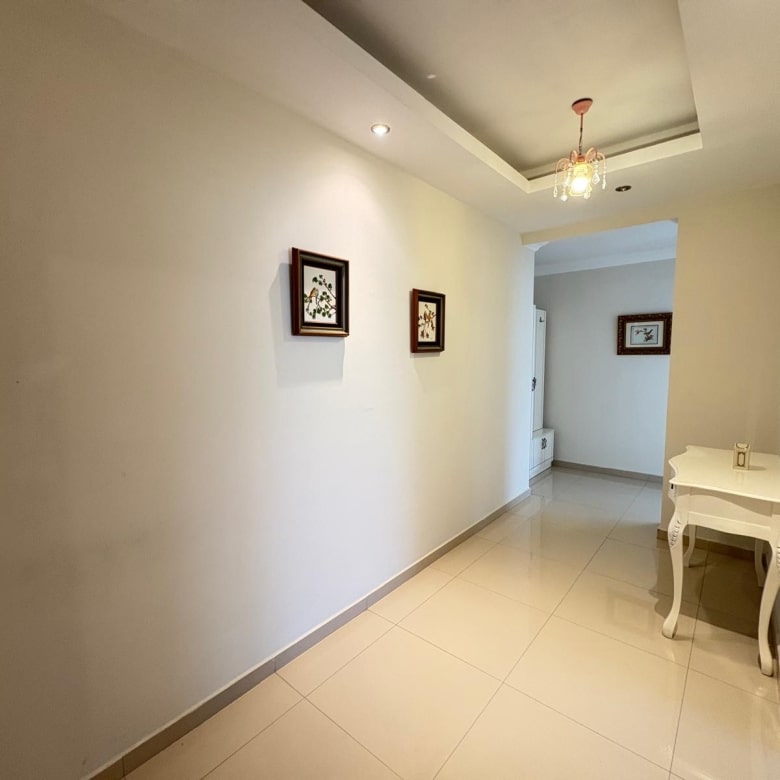 Step inside, and the first thing you notice is how bright it feels. The polished ceramic floors reflect natural light, enhancing the sense of openness. The kitchen is integrated into the living room, creating a functional central space that works for both daily meals and social gatherings.