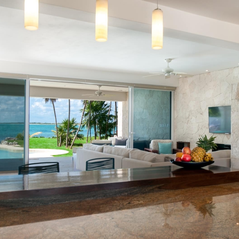 The villa offers approximately 541 square meters (5,828 square feet) of interior living space. It features three bedrooms, each with an en suite bathroom, along with a guest half-bath. The open-concept kitchen, dining, and living area creates a spacious and functional layout, with high ceilings and natural light throughout. The original design allows for easy expansion on the upper level, with the potential to add two or more bedrooms while capturing elevated Caribbean Sea views.
