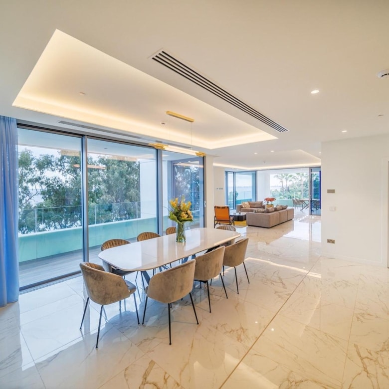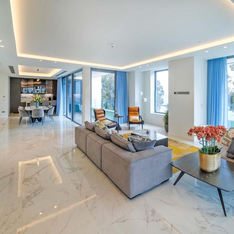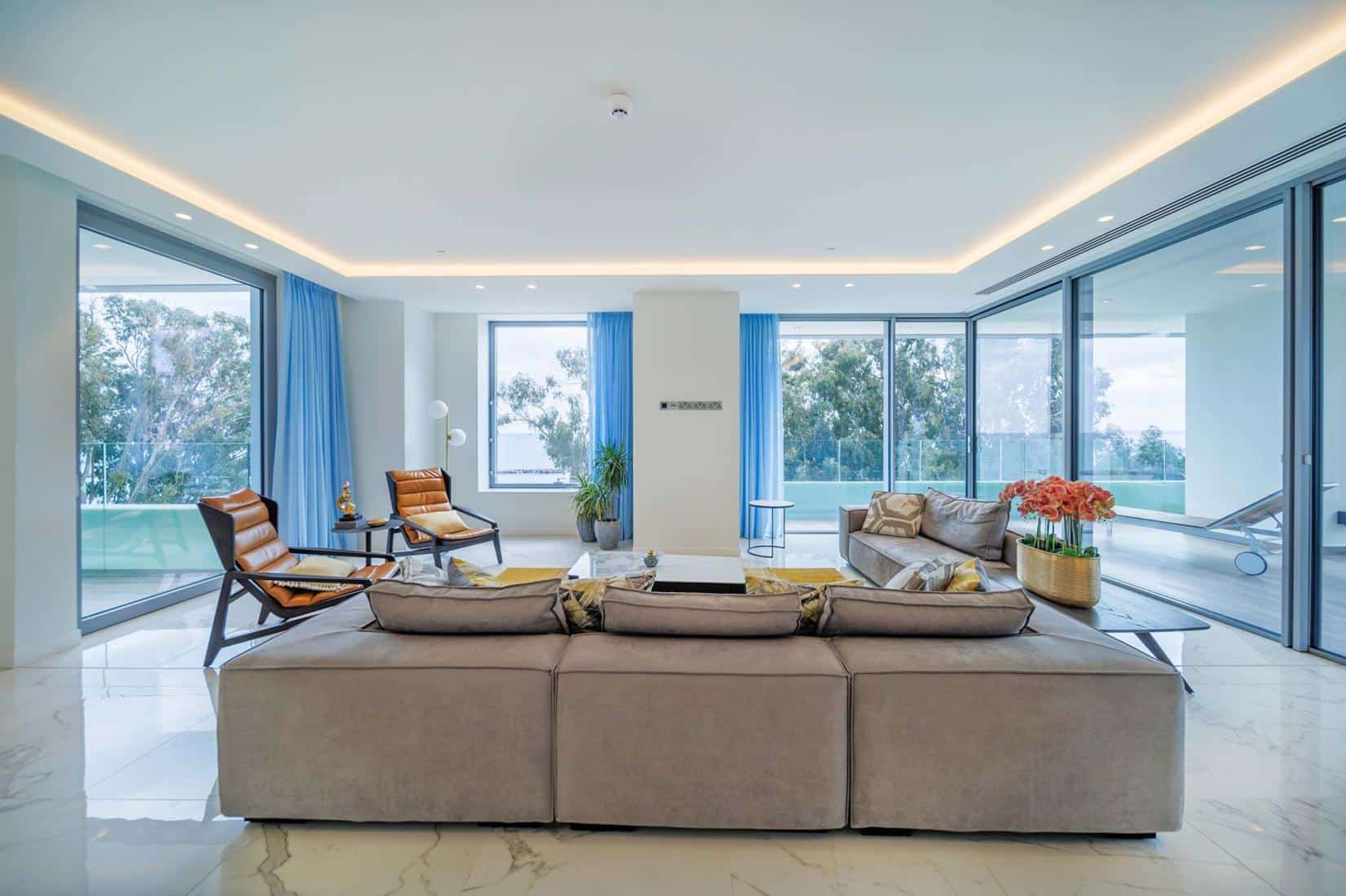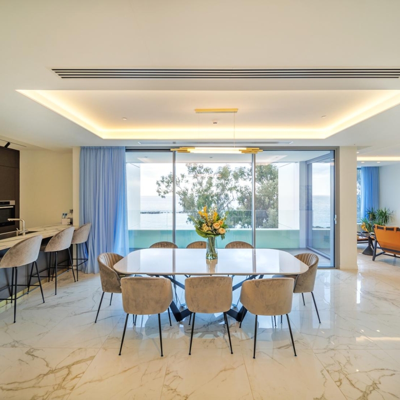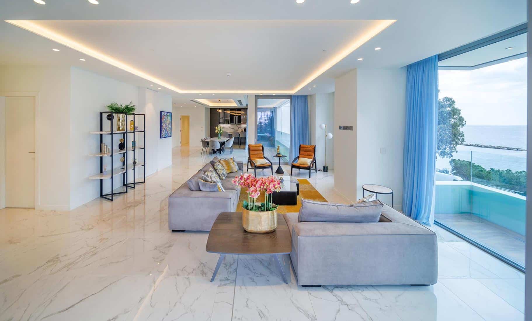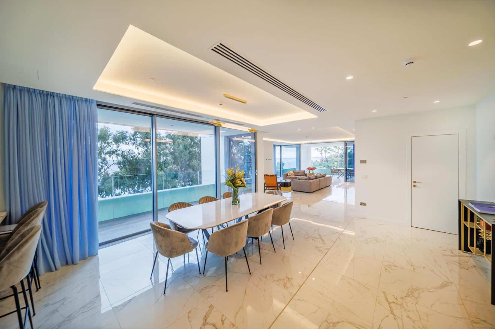 A luxury residential complex is located on the first coastline of Limassol, Cyprus’s important recreational and business location, Symbol offers its future residents designer apartments with views of the Mediterranean Sea and the picturesque coastline of one of the most dynamic resorts on the island. The Residence is comprised of 12 floors and 26 spacious apartment and Residents can enjoy numerous facilities including personal access to a private fitness center, as well as a SPA center, swimming pool, jacuzzi, a lounge zone, a large park and many more. The apartment, occupying an entire floor, provides stunning, uninterrupted sea views and a serene atmosphere with the gentle whisper of waves, a fresh sea breeze, and the essence of the nearby eucalyptus grove.
