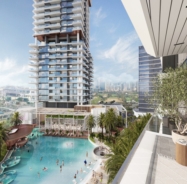 • Swimming Pools: Family swimming pool with sun loungers and cabanas, and a skyline pool overlooking the Uptown Dubai District.