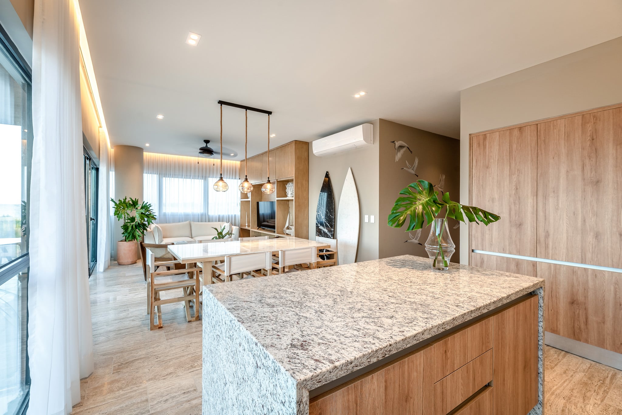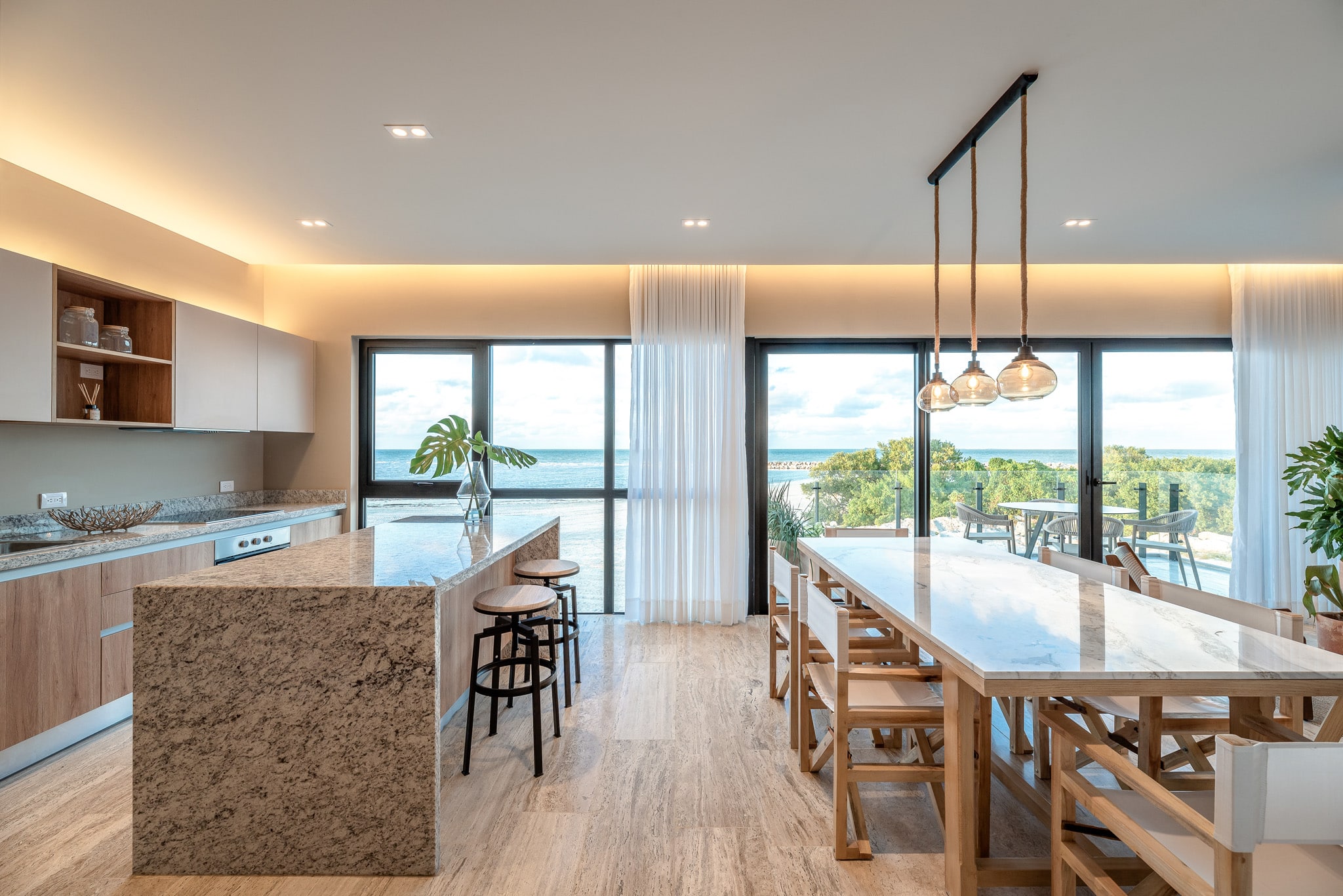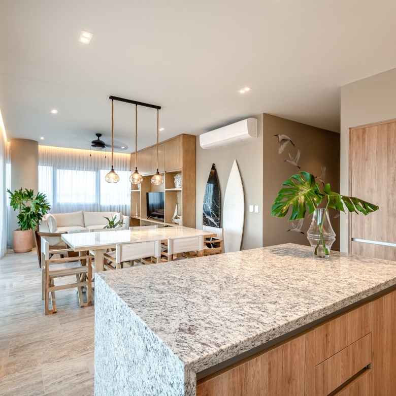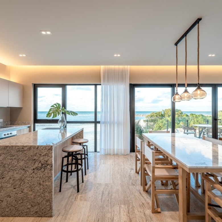 Designed for comfort and elegance, the penthouse features an open-concept living and dining area, high-end finishes, and expansive floor-to-ceiling windows that maximize natural light. The private sundeck and terrace create the perfect setting for relaxation while overlooking the stunning Yucatán coastline.