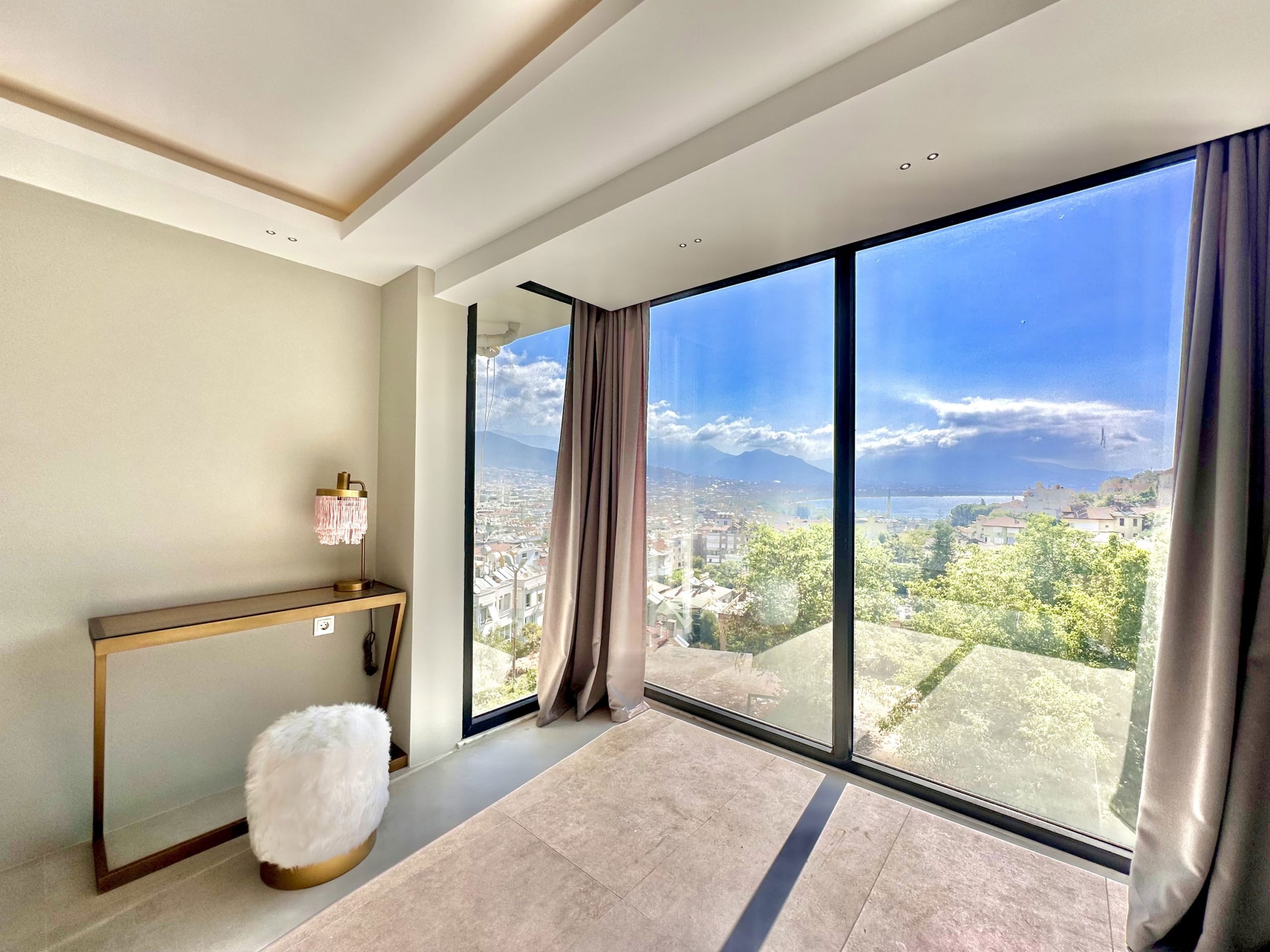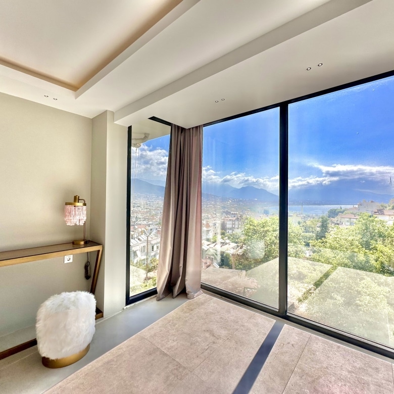 Thisfully renovatedapartment for sale in Alanya Centerblends modern luxury with unforgettable scenery. Located just500 meters from the beachin the heart of the city, this stunning 2-room property offers uninterrupted views of theAlanya Castle, shimmeringMediterranean Sea, and city skyline—thanks to its impressive floor-to-ceiling windows in both the living room and bedroom.