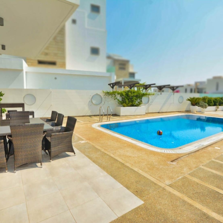 This stunning 5-bedroom villa offers the perfect blend of luxury and comfort. Nestled in a serene neighborhood, the villa boasts spacious living areas and modern amenities. Each bedroom is designed for relaxation, featuring en-suite bathrooms and plush furnishings. The open-plan kitchen and dining area are perfect for entertaining, while the expansive outdoor space includes a private pool, barbeque and a patio with breathtaking views of the Mediterranean Sea. Enjoy the best of Cyprus living in this exquisite villa, just minutes away from pristine beaches and vibrant local attractions.