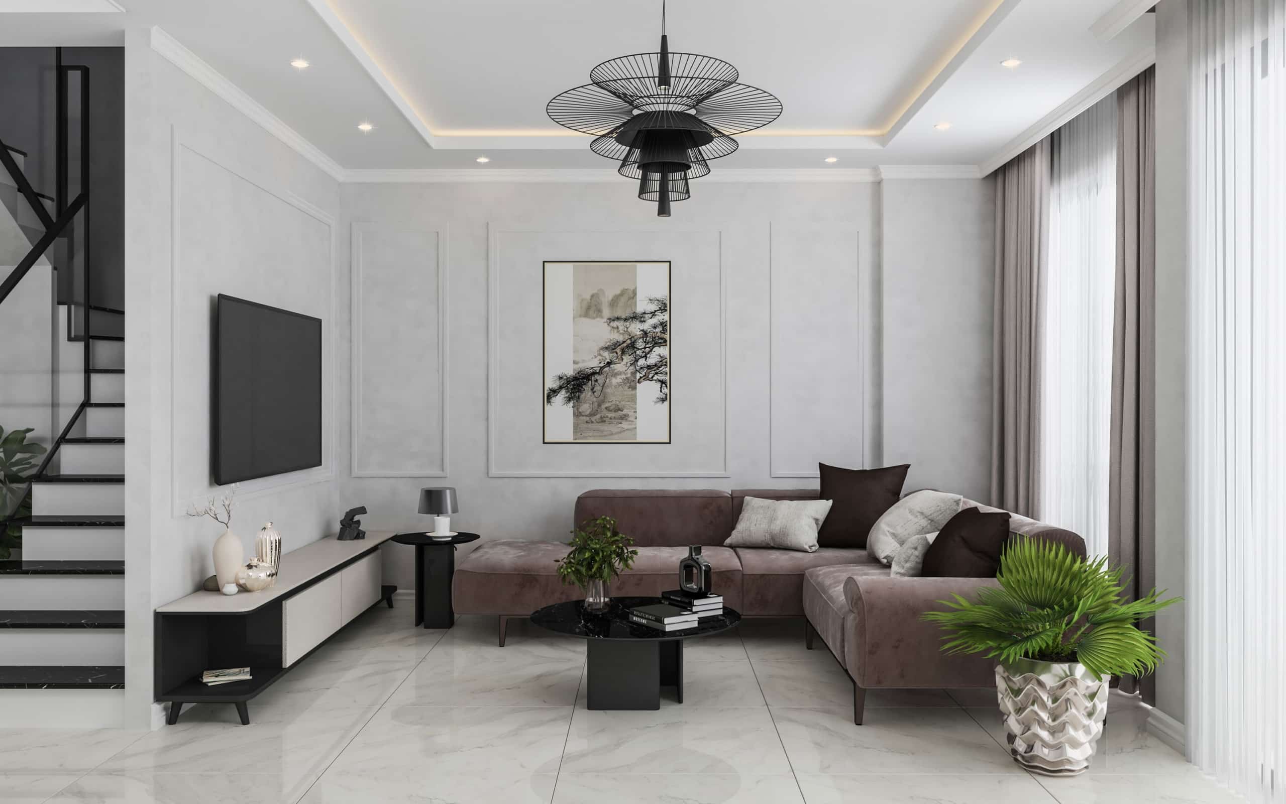 Recessed LED spotlights run through the ceilings, creating modern ambiance while providing energy-efficient illumination. In the living room, adding a central pendant or chandelier could enhance warmth and character.