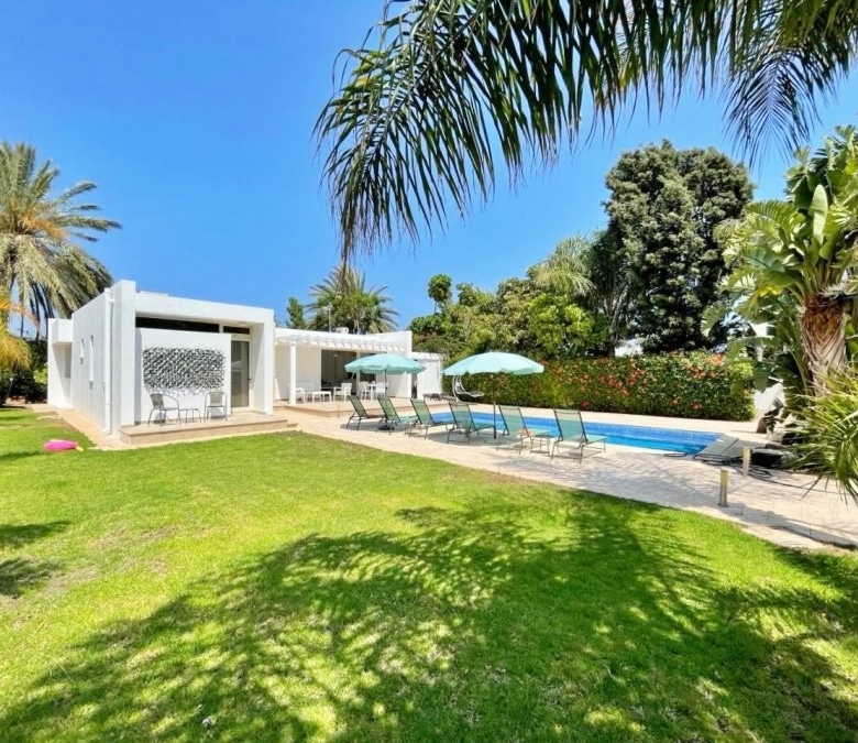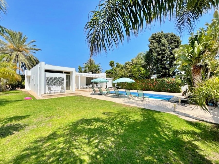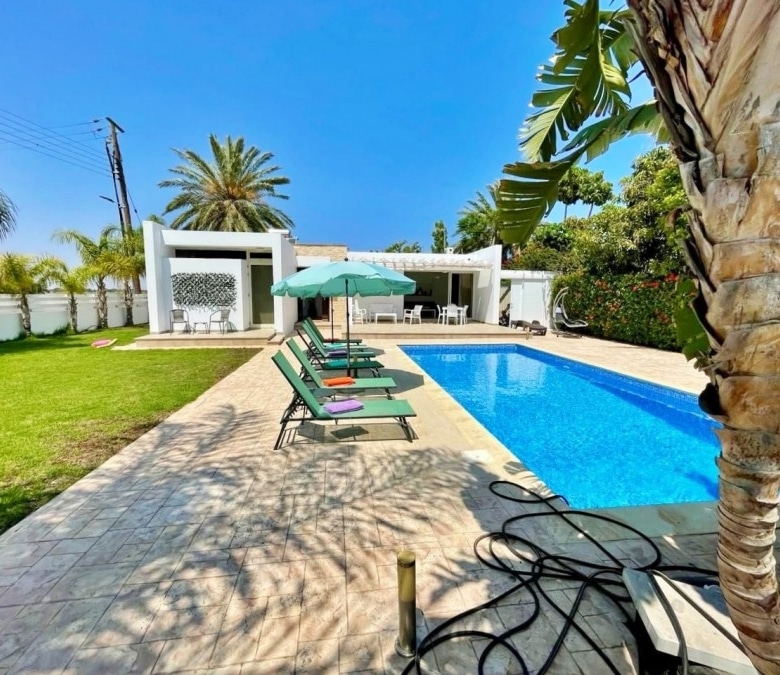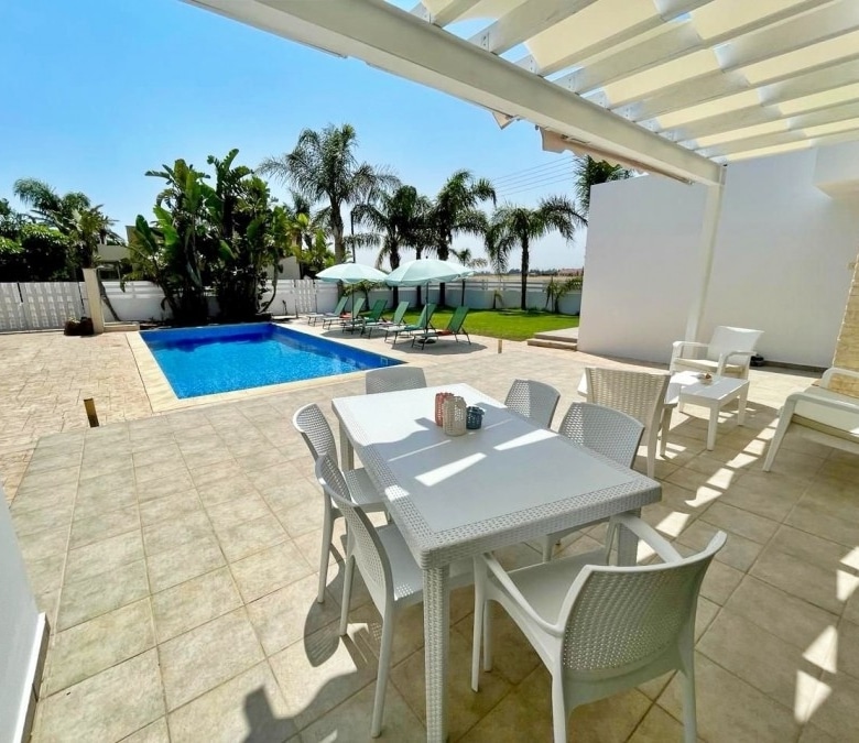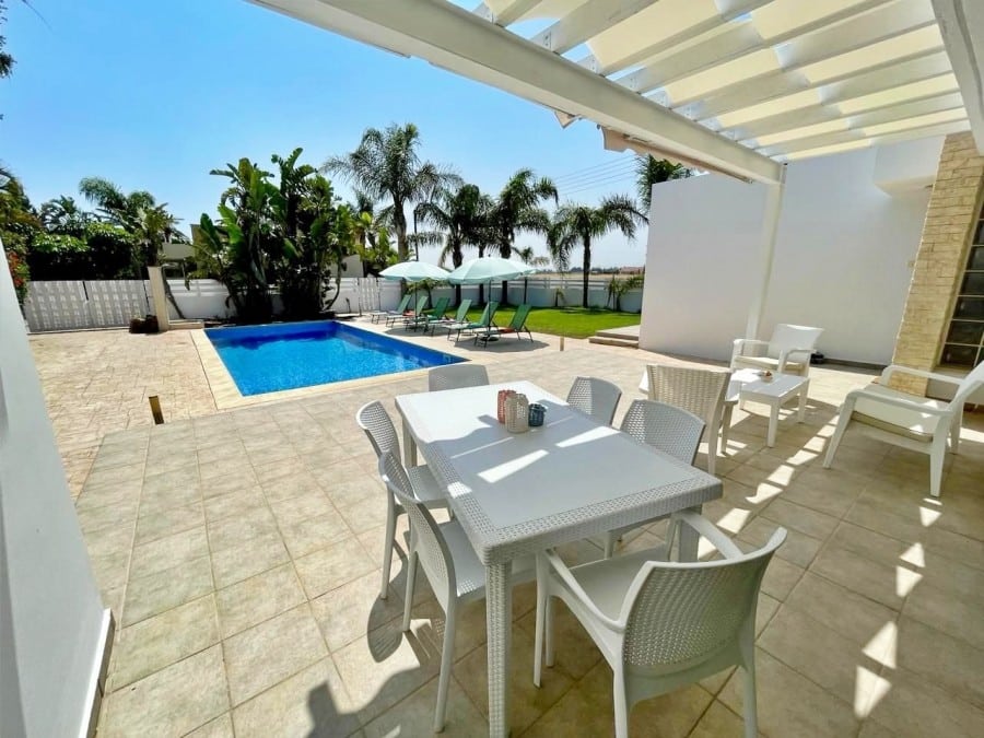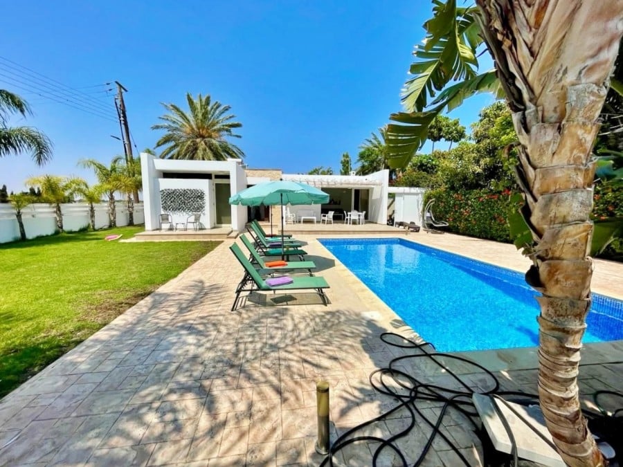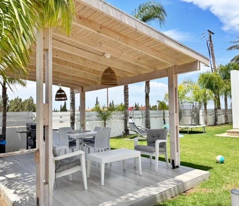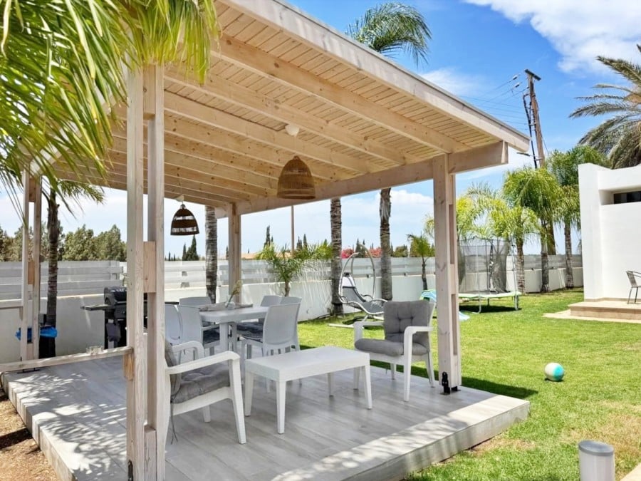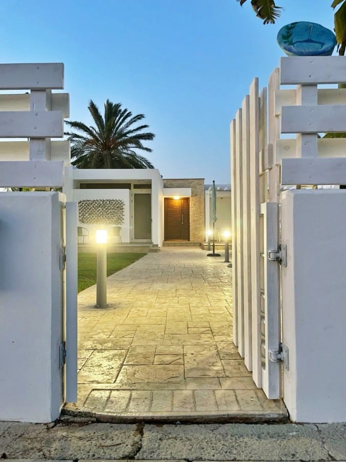 A beautifully situated 3-bedroom house in the charming seaside village of Pervolia, Larnaca. Nestled within a secure gated complex of just eight houses and only 500 meters from the beach, this corner-plot property offers the perfect blend of privacy and convenience. Located in a peaceful neighborhood with easy access to all amenities and Larnaca city center, the home features a large gated plot with a private swimming pool, a summer pergola, and a landscaped garden. Inside, you’ll find a spacious living room, an open-plan kitchen, a family bathroom, and three comfortable bedrooms, including one with an ensuite. Recently upgraded with newly installed photovoltaic panels and air conditioning units, this property is ideal for both permanent residence and a holiday retreat.