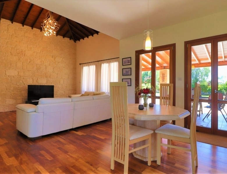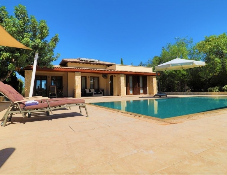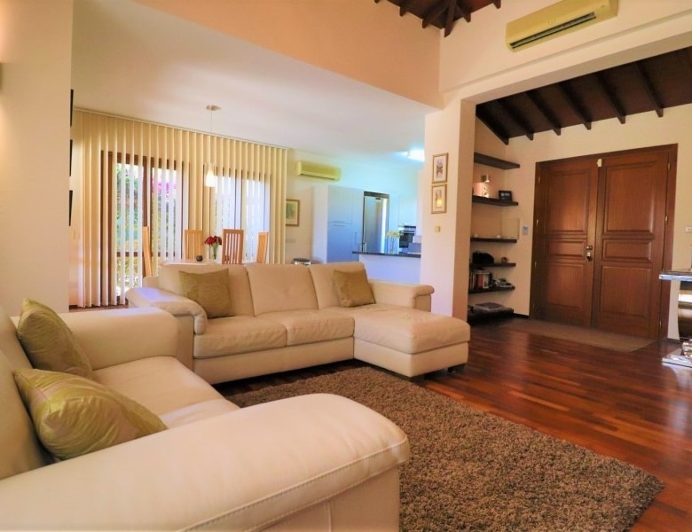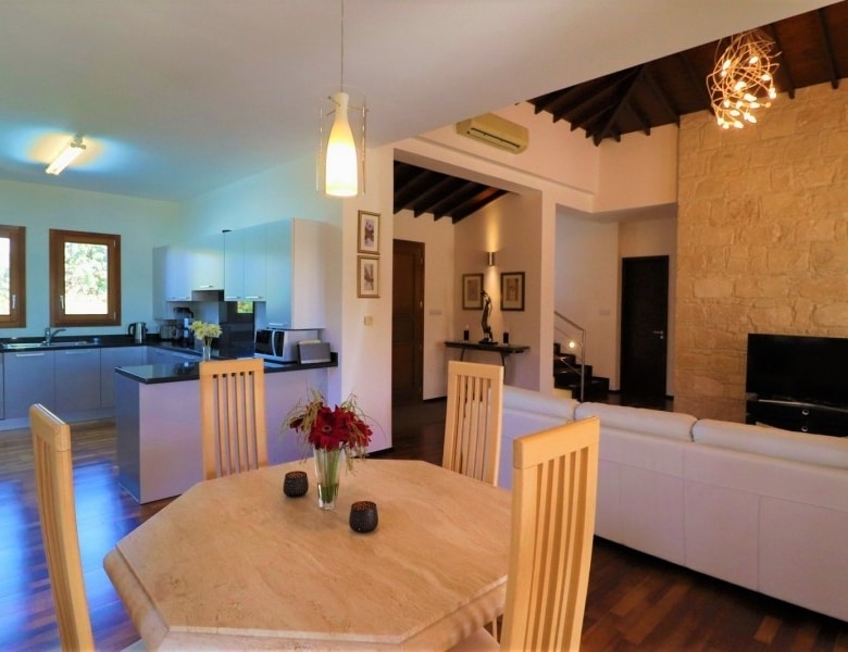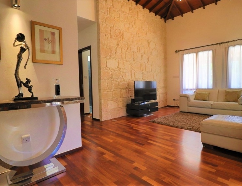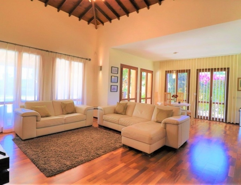 This beautifully presented luxury villa is positioned in a fabulous location, overlooking the world famous golf course on the eastern plateau of the resort. Entering the villa you are greeted with a modern, open planned living area, having full length glass doors all around giving plenty of light, with adjacent dining area and open planned modern kitchen with all the latest fitted, top of the range appliances and luxury fixtures. To the left you will find a very spacious and airy master bedroom with ultra modern luxury en-suite bathroom and beautiful fully fitted wardrobes. The ground floor also incorporates a guest toilet. Up a few steps you will find the second spacious double bedroom again with fully fitted wardrobes and luxury en-suite bathroom. Down a few steps from the living area you will find another spacious double bedroom and on the lower ground floor a further large room which can be used as the fourth bedroom and luxury en-suite bathroom. Stepping outside is quite stunning, with plenty of shaded verandas, a magnificent overflow pool, all surrounded by plush, mature trees and shrubs.