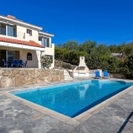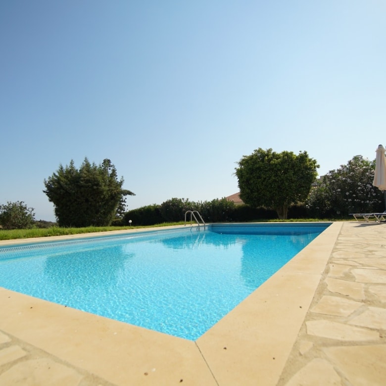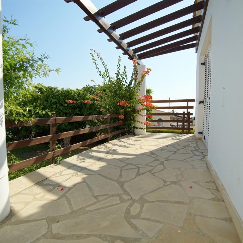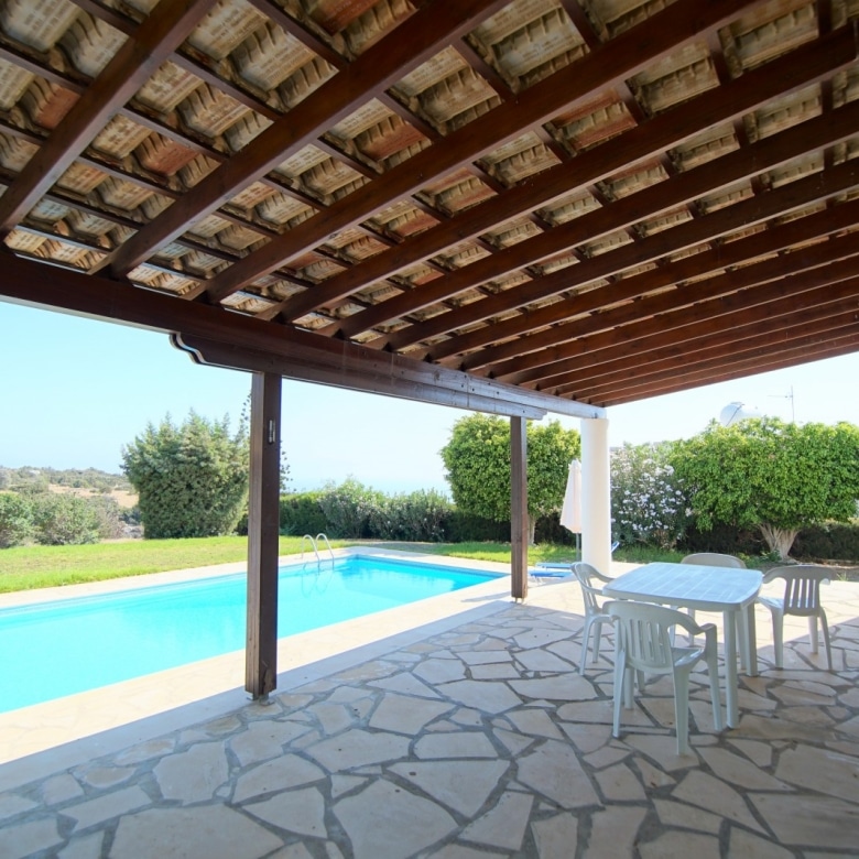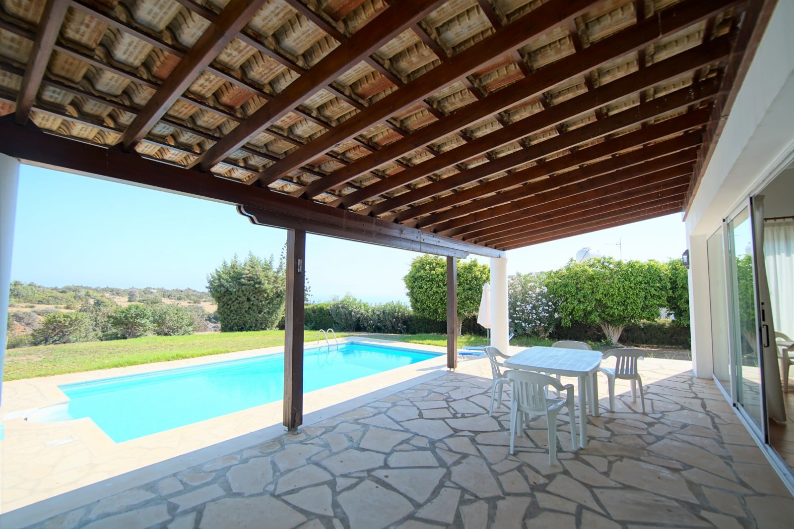 Beautiful 2 bedroom bungalow in a cul-de-sac of just five other houses. Through a long and wide driveway to the house, a door opens and you will be greeted by a spacious and bright open-plan living/dining area with patio doors leading to a covered veranda, beautifully landscaped gardens, and a swimming pool where you can enjoy hot summer days, chilling in your own privacy. pool and enjoy the sea view. To the left of the front door is a separate well-equipped kitchen and laundry room. From the living room, a corridor leads to two bedrooms, one with its own bathroom and a family bathroom. The house that could be called home is located in an ideal location for exploring the stunning Akamas Peninsula. The nearby picturesque fishing resort of Agios Georgios has a beautiful beach, secluded coves, local taverns, and fish restaurants. It is close to restaurants, shops, bus routes, a private English school, the popular beaches of Coral Bay, and close to Paphos town.