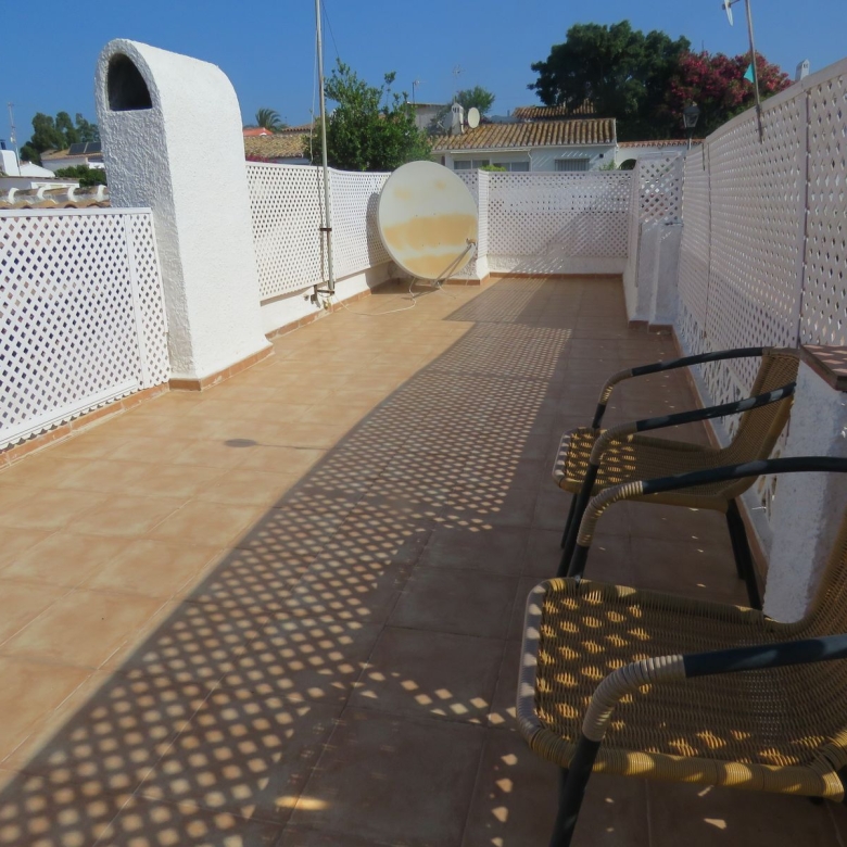 A typical charming Calypso bungalow. The property has 3 double bedrooms and 2 bathroom of which one ensuite. The semi open kitchen-living area with fireplace leads out to a large sunny terrace. On the front of the property is an enclosed private parking. All rooms have aircon and in the back of the kitchen is a large shed/pantry available. There is also a large roof terrace with distant sea views. The property is conveniently located with all amenities within walking distance.