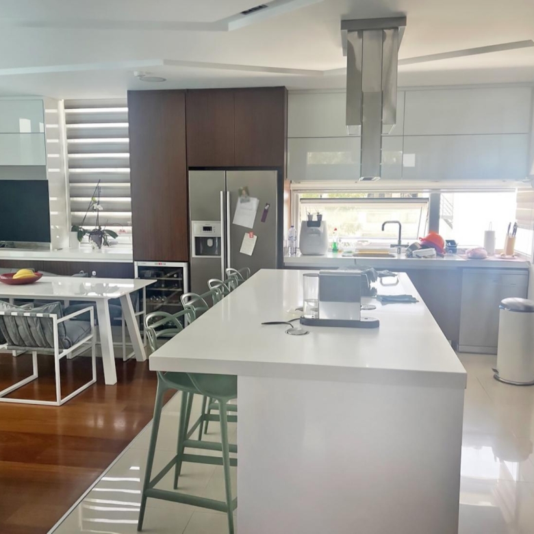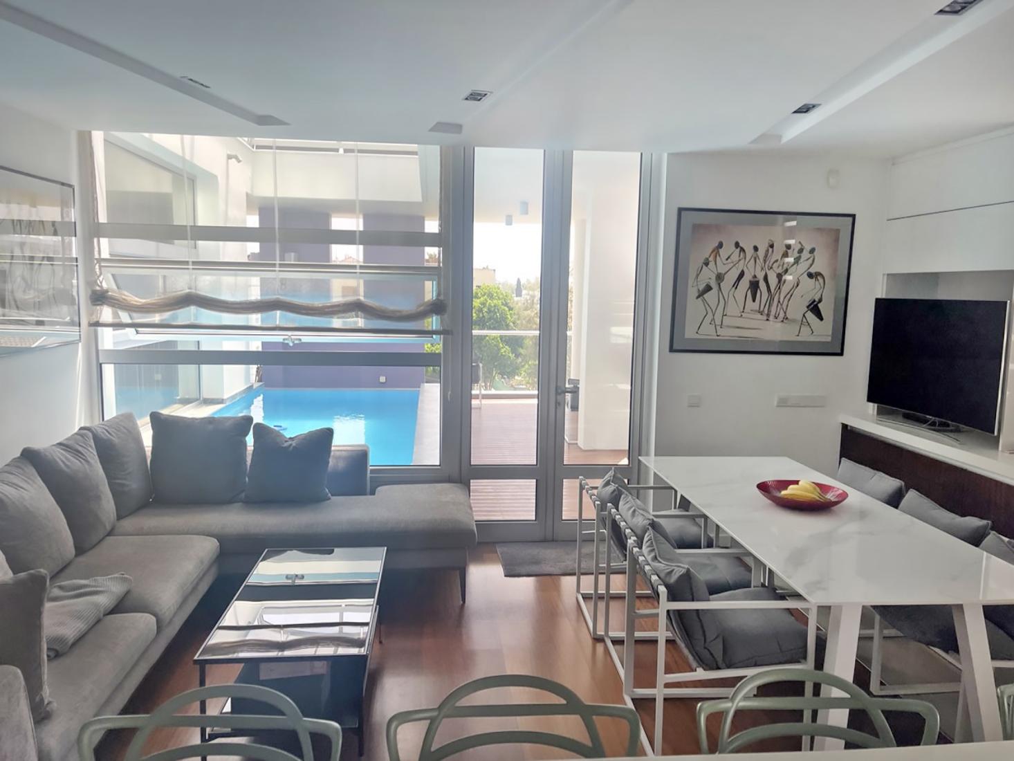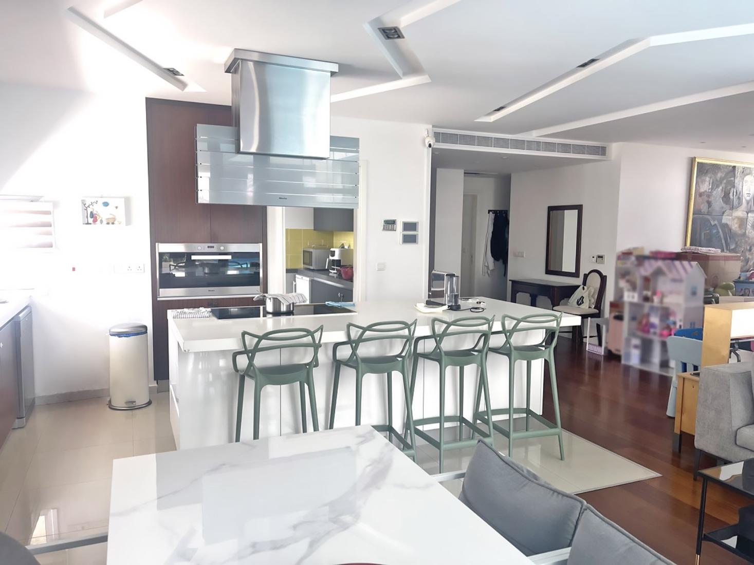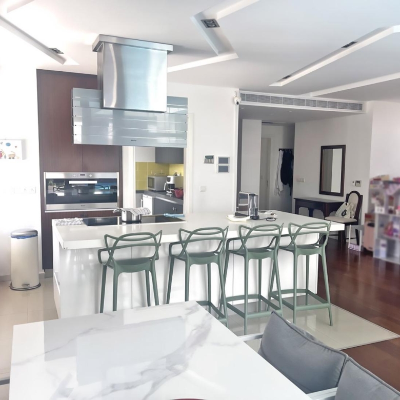 One of a kind, luxurious whole floor penthouse with roof garden . Easy access to GC school, European University and English school, American and Russian embassies. Very large modern kitchen with separate laundry room, family room, large dining room and double main lounge with two – sided wood-fireplace and wooden floors. 3 large bedrooms all en-suite plus guest toilet plus maid’s quarters (with bathroom and kitchenette). All bedrooms windows with electric shutters, fully a/c and underfloor c/h, alarm, WiFi and sound system throughout, infinity swimming pool covered with sliding glass roof with solid wood decking on main floor plus roof garden with BBQ area. All electrical appliances and curtains included.