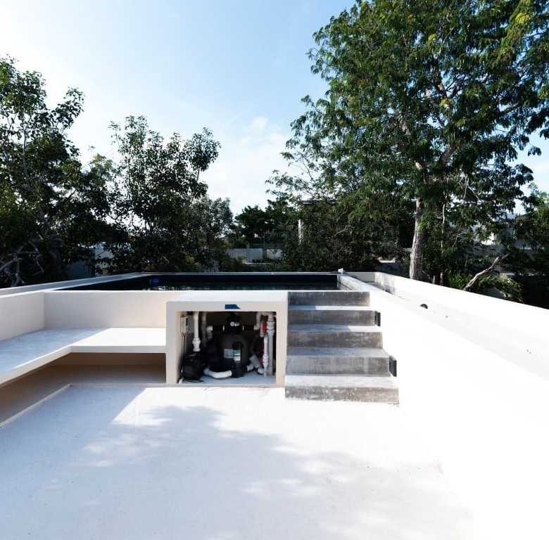 Casa Uumbal’s crowning feature is its stunning rooftop terrace. With a shaded pergola, a built-in grill, and a panoramic Jacuzzi, this space is perfect for everything from sunset views to stargazing. Whether you’re basking in the sun or enjoying quiet evenings surrounded by the jungle’s tranquility, the rooftop offers an unforgettable experience.