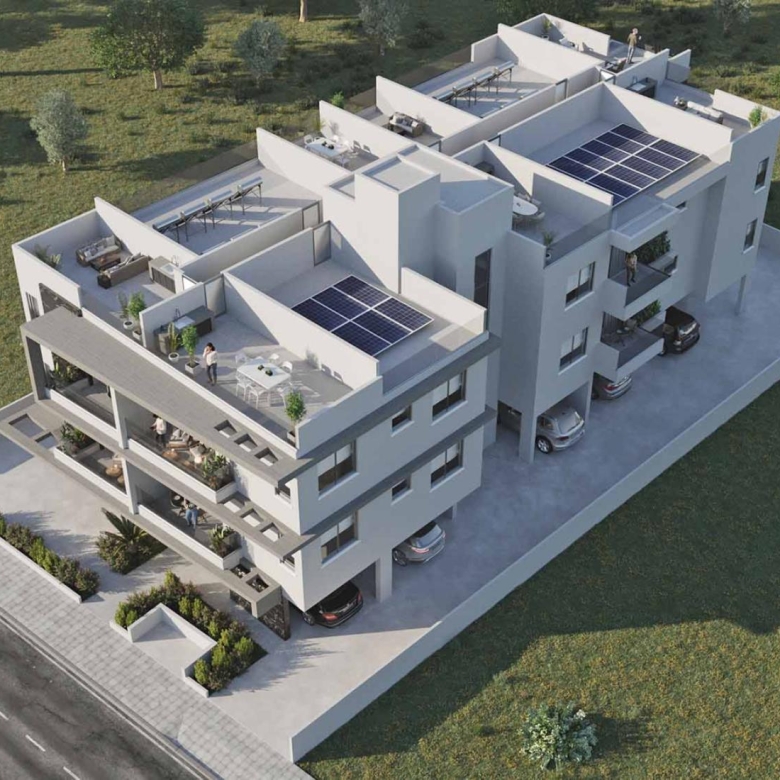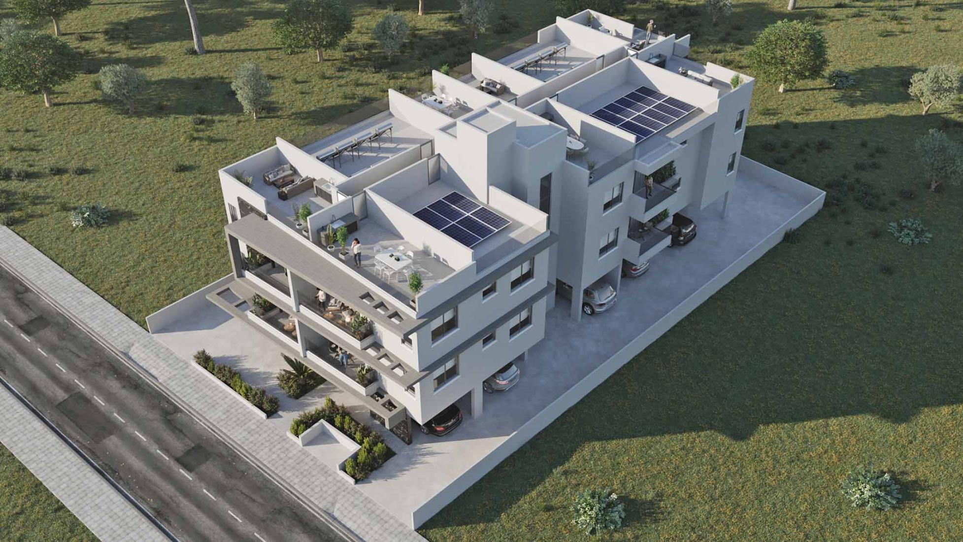 Introducing a modern residential building of fourteen apartments. The project is located opposite of Archagelos Michael church and 400 meters from the Church of Profitis Elias. It’s very close to the shops, supermarkets, schools, and only 20 kilometers away from Larnaca airport, with direct access to the highway to Nicosia and Limassol. At a distance of 2 kilometers are the beaches of the area (Blue wave, Lebay beach). This modern 2 bedroom apartment boasts a spacious roof garden, perfect for enjoying the beautiful views and outdoor living. Featuring an open-plan living area, fitted kitchen, and elegant finishes throughout, this apartment combines style and comfort.