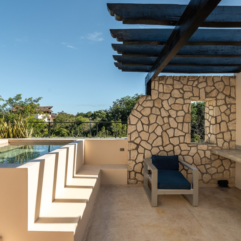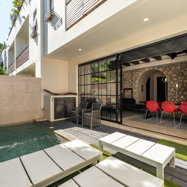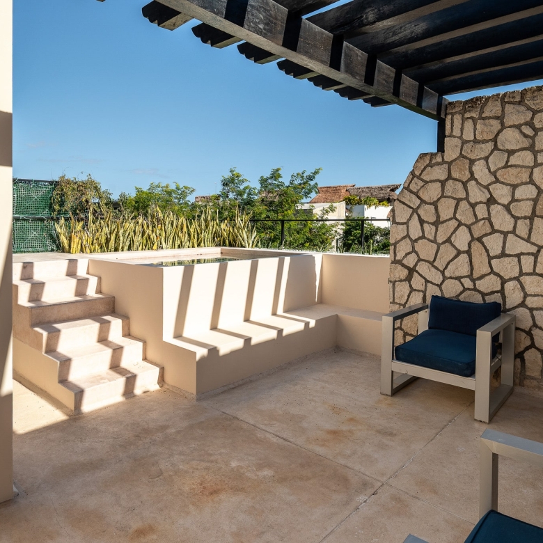 Cienfuegos Villa 1 is a refined three-bedroom townhouse in the exclusive boutique development of Cienfuegos Tulum, located in the prestigious Aldea Zama community. Designed with Mediterranean-inspired architecture and locally sourced materials, this residence seamlessly integrates luxury with the natural beauty of Tulum.