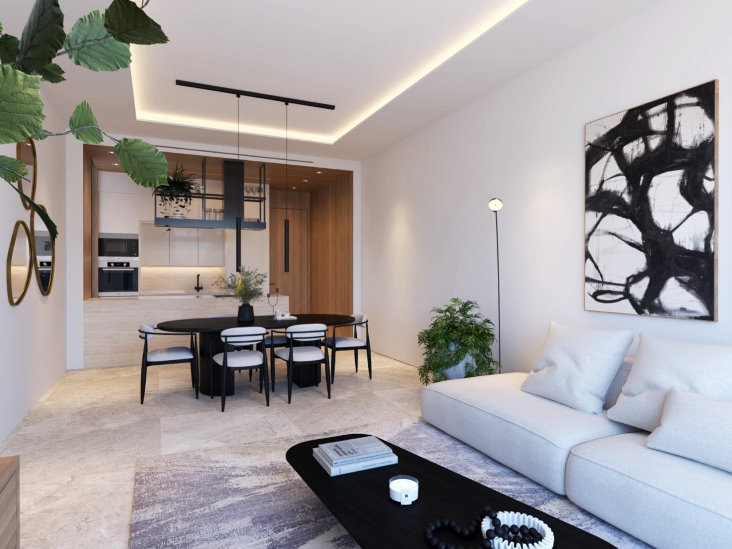 Spacious penthouse suitable for your new home, close to Ammochostos Stadium, with excellent access to the highway network and the city. Boasting high specifications and a modern design, this flat offers an unparalleled living experience. The interior is meticulously crafted with contemporary finishes and state of the art amenities, ensuring both comfort and style. Large windows flood the space with natural light, creating a bright and inviting atmosphere. Don’t miss the opportunity to make this prime Larnaca location your new home. Optional extras include Underfloor heating, Turn and Tilt Mechanisms in aluminum openings, Mosquito net on aluminum openings, Water Tap on the Veranda, Home automation Security and Fire alarms and Photovoltaic System.