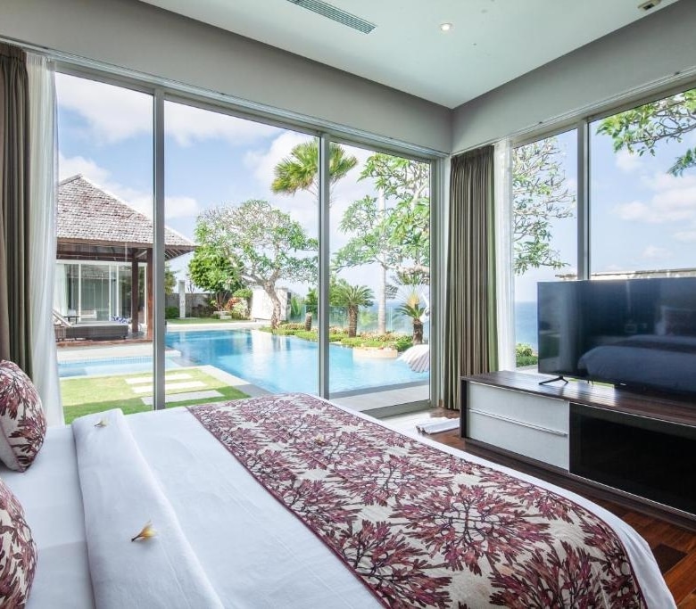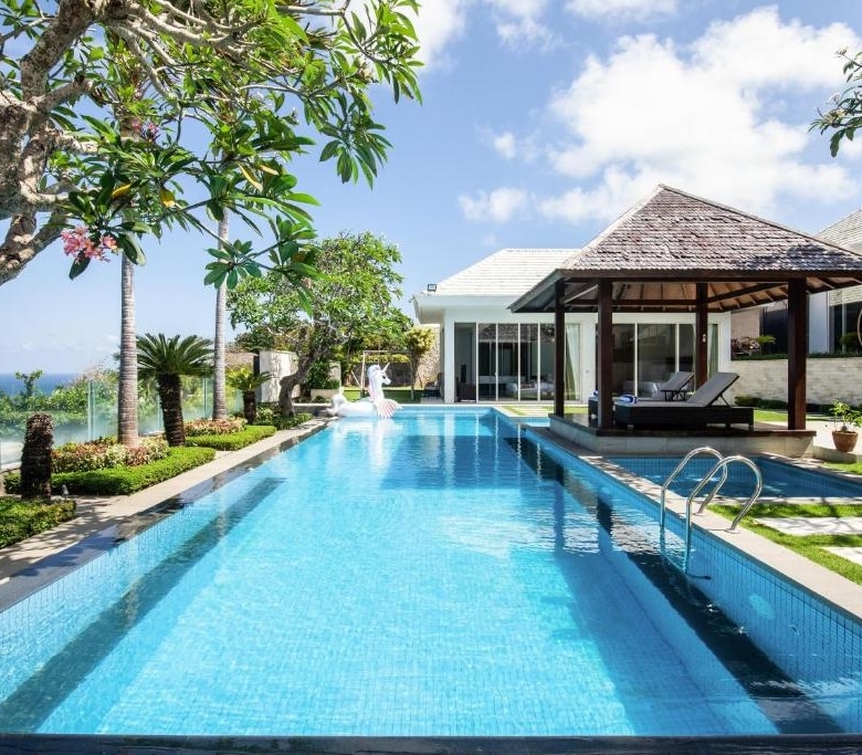 This breathtaking clifftop 4-bedroom villa with stunning 180 degrees ocean views is located in an exclusive and prestigious gated community in Kutuh, Ungasan, within a 45-minute drive from Bali’s international airport. Secluded yet accessible, the property is for those searching for a “get-away-from-it-all”, luxurious private sanctuary yet a short drive to attractions, entertainment and dining options.