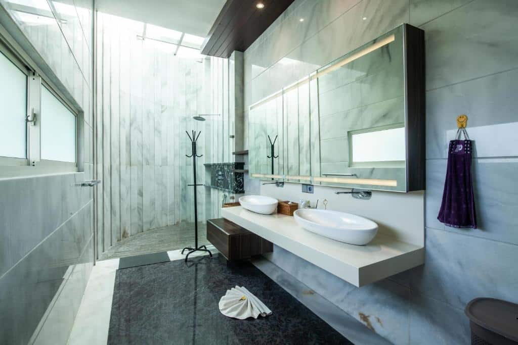 Offered on a FREEHOLD title and spanning 1330 sqm, the multi-level villa has a total building size of 581 sqm. This extravagantly designed contemporary villa set in beautiful manicured tropical gardens has 4 elegant, soundproofed bedrooms, 7 luxurious bathrooms and spacious indoor and outdoor living areas, complementing the long infinity swimming pool and the amazing ocean views. The kitchen is modern and fully equipped. The villa has parking for 2 cars and comes fully furnished.