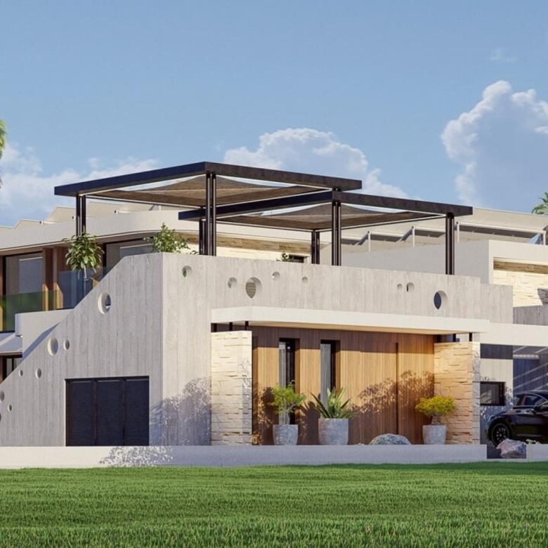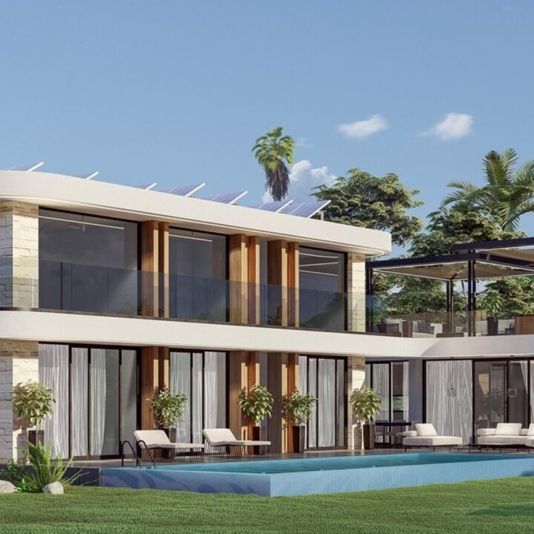 Experience modern luxury in this 3 bedroom modular bungalow with an en suite. Set on a 645㎡ plot, it offers ample space and a roof garden as an additional option. Smart home features, high quality materials, and large windows create a seamless blend of design and comfort. Outside, enjoy an infinity pool, roof garden, BBQ area, and fire pit. A wood cabin adds versatility, while solar panels and insulation enhance efficiency. With a beach and pool steps away, this is coastal living at its finest.