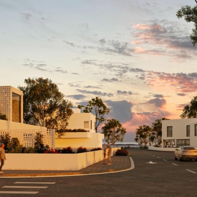 New spacious independent houses just a 10 minute drive from Larnaca city center and 3km from Kiti. These exclusive two storey villas boast three bedrooms with sea view terraces on large plots of land. Enjoy landscaped gardens, private swimming pools, and barbecue areas. Each villa comes equipped with cameras and alarm systems for added security. Carefully selected traditional styles and contemporary design offer a tranquil and authentic living experience. Experience light filled interiors, sun terraces, and balconies for indoor – outdoor enjoyment. Ideal investment for year round pleasure.