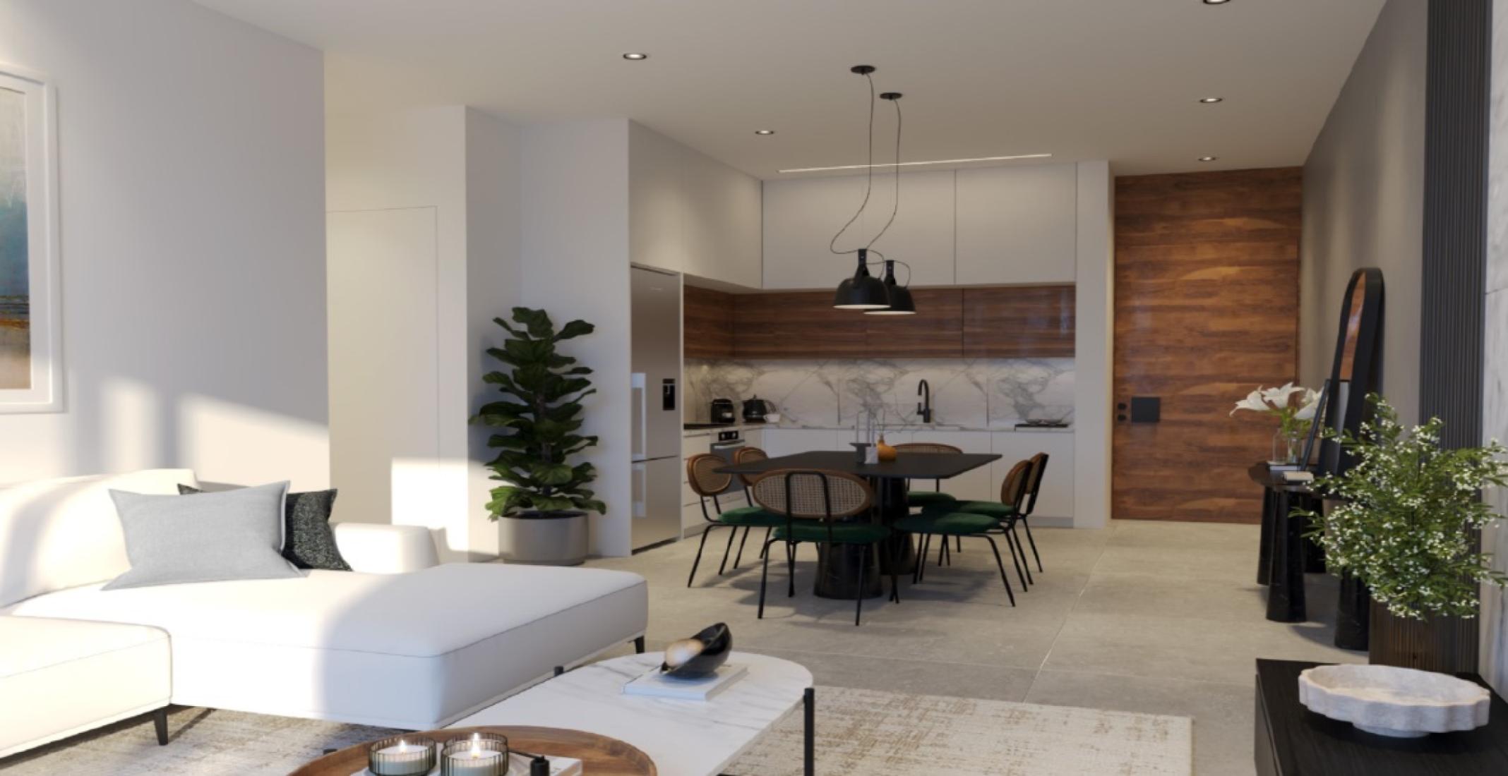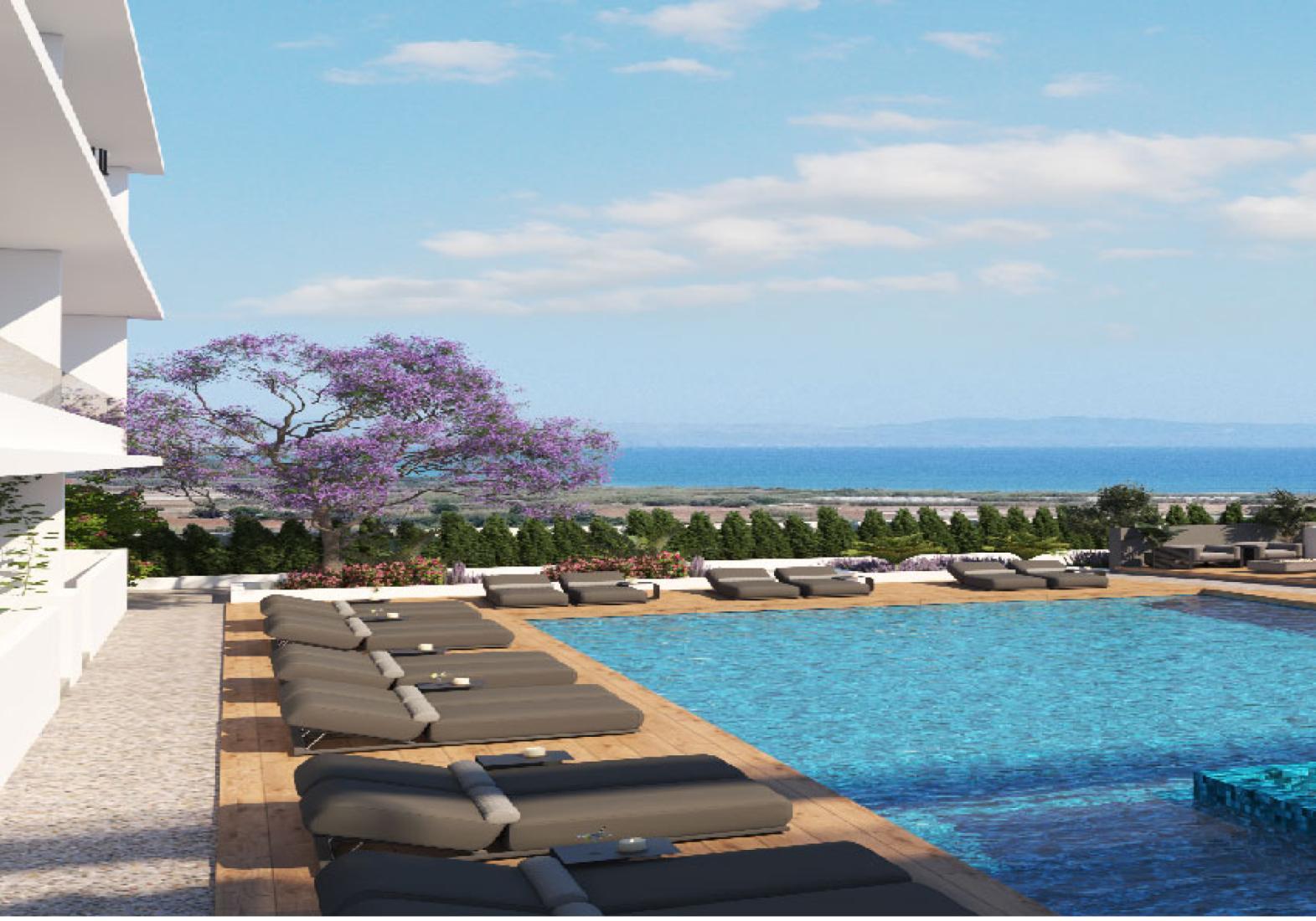 This modern 2 bedroom apartment offers breathtaking panoramic views of the Mediterranean’s azure waters. Wake up to the tranquil sight of the shimmering sea, 600 meter walking distance to the beach making each day feel like a peaceful retreat. This modern complex blends luxury, accessibility, and sustainability. Designed for comfort and eco-conscious living, these thoughtfully crafted homes harness renewable energy for a greener lifestyle. Enjoy the perfect balance of serene coastal living with easy access to the city’s vibrant energy. Experience the best of both worlds—where the beauty of the Mediterranean meets modern, sustainable luxury.