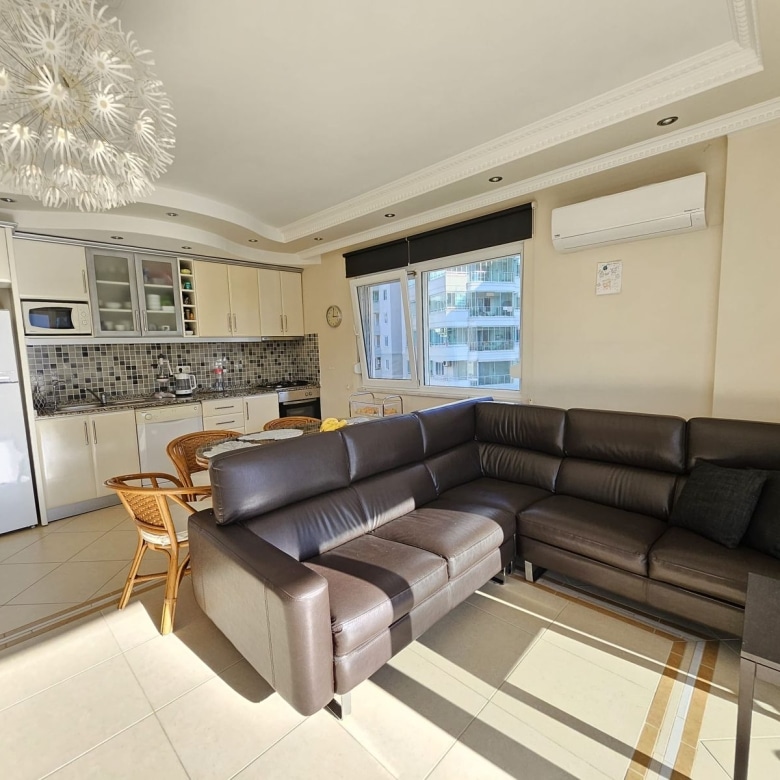 What sets this property apart is its perfect blend of luxury and convenience. Positioned on the southeast side, it boasts abundant natural light and breathtaking partial sea views. The open-plan layout seamlessly integrates living, dining, and kitchen areas, all fully equipped with high-end appliances and stylish furnishings. Every detail has been considered, from the modern fittings in the two bathrooms to the ample storage space throughout.