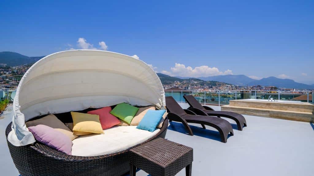 The balcony adds another dimension, offering views of Alanya’s urban landscape framed by the distant Taurus Mountains. It’s a spot where city life and natural beauty meet in one frame, making mornings and evenings equally enjoyable.