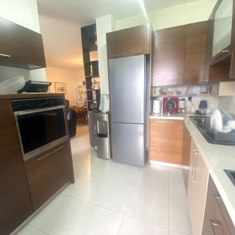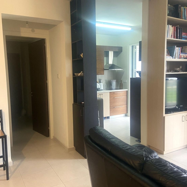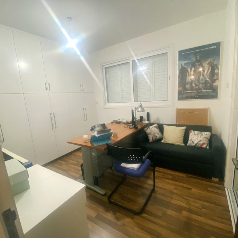 A spacious 2 bedroom flat with a separate kitchen and a nice balcony in a well kept building opposite Metro Supermarket, Strovolos. There are two split units, one in the sitting area and one in the main bedroom.