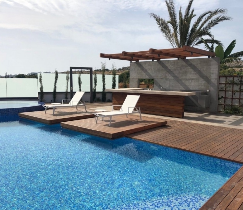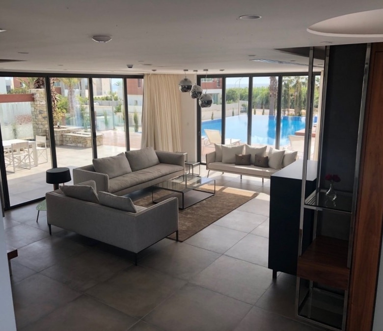 A stunning three bedroom modern design villa ideally located in a peaceful development within few minutes away from cosmopolitan Ayia Napa and Protaras. This beautiful recently built contemporary villa boasts three bedrooms suites. The interior areas open smoothly and continuously to the exteriors to create the ideal indoor-outdoor lifestyle environment with plenty of natural light coming throughout.Outside there is a beautiful 16 X 9 swimming pool, landscaped garden, and BBQ area ideal to enjoy sunshine and welcoming your friends and family. A spacious roof terrace with Jacuzzi overlooking the blue of the Mediterranean sea and to enjoy the lovely sunsets.