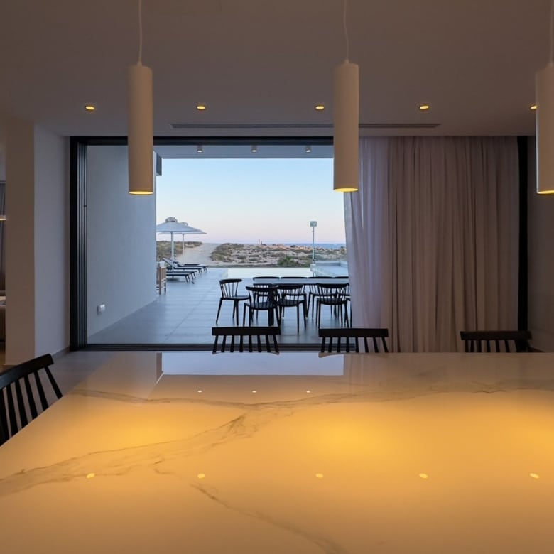 This luxurious beachfront villa project in Ayia Napa features two exquisite villas, offering unparalleled seaside living with modern elegance and breathtaking Mediterranean views. Each villa spans multiple levels, designed for comfort and sophistication. The lower floor includes a bedroom, bathroom, and storage room, while the ground floor boasts an open-plan kitchen, spacious dining and living area, guest WC, and outdoor deck with a pool and jacuzzi. The first floor offers three ensuite bedrooms, providing a private retreat for each resident. The rooftop garden is the highlight, featuring a BBQ area, jacuzzi, and an additional WC, perfect for relaxation and entertaining. With an elevator connecting all floors and parking for two cars, these villas are designed for absolute convenience and luxury. Situated in the heart of Ayia Napa’s coastal paradise, this is an exclusive opportunity to experience the best of beachfront living.