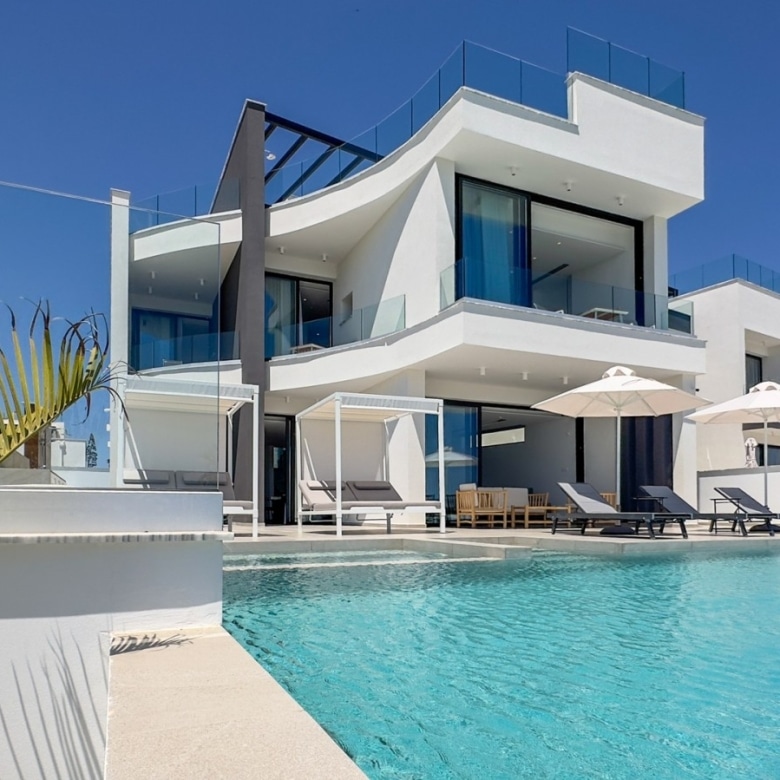 This luxurious beachfront villa project in Ayia Napa features two exquisite villas, offering unparalleled seaside living with modern elegance and breathtaking Mediterranean views. Each villa spans multiple levels, designed for comfort and sophistication. The lower floor includes a bedroom, bathroom, and storage room, while the ground floor boasts an open-plan kitchen, spacious dining and living area, guest WC, and outdoor deck with a pool and jacuzzi. The first floor offers three ensuite bedrooms, providing a private retreat for each resident. The rooftop garden is the highlight, featuring a BBQ area, jacuzzi, and an additional WC, perfect for relaxation and entertaining. With an elevator connecting all floors and parking for two cars, these villas are designed for absolute convenience and luxury. Situated in the heart of Ayia Napa’s coastal paradise, this is an exclusive opportunity to experience the best of beachfront living.