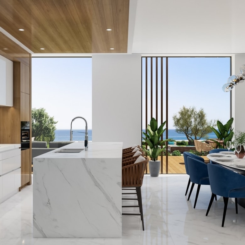 A unique development of 4 ultra-luxury villas, located on the sandy beach at the east side of Agia Napa Marina. Each villa will have 5 bedrooms and 5 bathrooms, with plots starting from 562 sq. m to 1897 sq. m. In addition, there is a private roof garden on each villa, with direct sea views. This villa has a roof garden of 70 square meters.