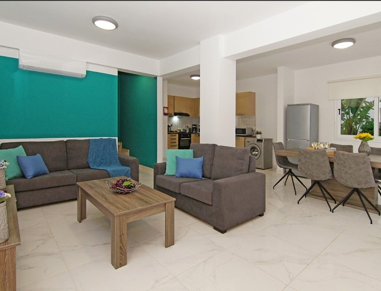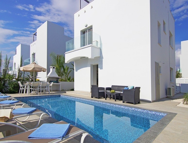 opulence and all the finest benefits that coastal living offers. The design and layout of the villas are second to none. Each villa offers a modern kitchen, spacious living and dining area and easy, convenient access to a private swimming pool and patio area. Located just steps away from one of the island’s best beach, ‘Nissi Beach’!