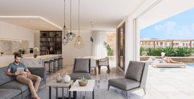 11 fully-detached 3, 4 or 5 bedroom villas, just steps away from the beautiful crescent-shaped beach are designed with a thoughtful balance of refined sophistication and stylish contemporary luxury. Each villa has spacious open-plan living areas, finished with the finest materials, fittings and fixtures.