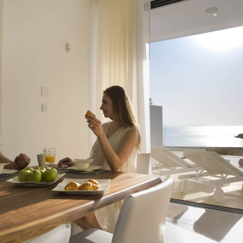 Blue Waves beach front Villas offers hotel facilities and services. Residents may choose to enjoy different services including food and beverages. Furthermore, residents may choose to acquire private massage at the property, while enjoying the tranquil beach of Pernera combining the elegance that is provided by our Group.