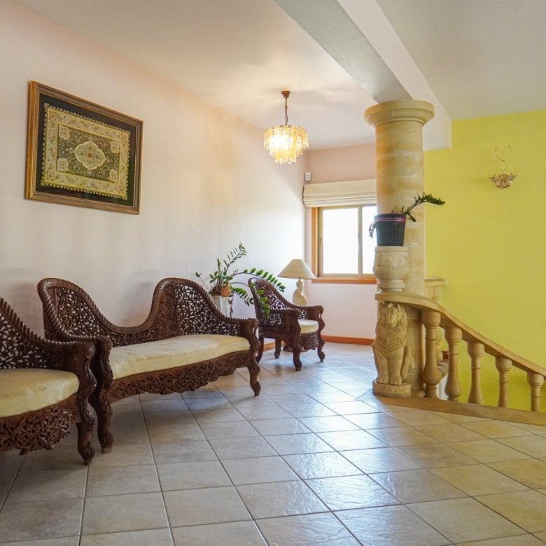 This elegant 5 bedroom villa in Alethriko village, Larnaka offers luxury and comfort on a spacious landscaped plot. With open-plan living, a modern kitchen, en-suite bedrooms, and a serene master suite it is perfect for family living. Outside, enjoy a private pool, lush gardens, and large verandas, all in peaceful, yet convenient location.